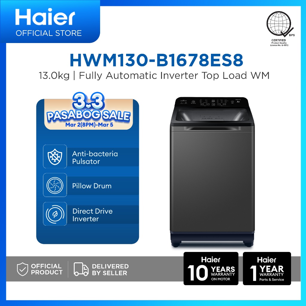 [NEW] Haier HWM130-B1678ES8 13.0 Kg Silent Wash+ Fully Automatic Inverter Top Load Washing Machine