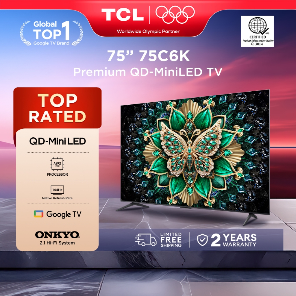 [NEW] TCL 4K QD-MiniLED Google Smart TV C6K, 144Hz, AiPQ, Dolby Vision, HDR, Slim & Uni-Body