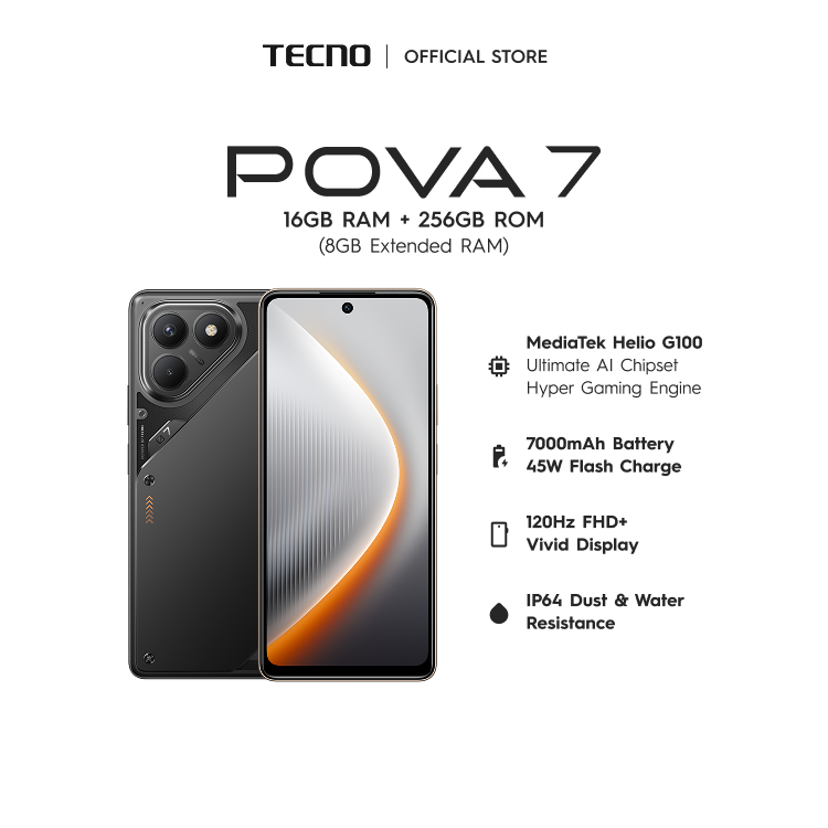 TECNO POVA 7 | 7000mAh 45W | MTK G100 Ultimate | 120Hz FHD+| 108MP | IP64
