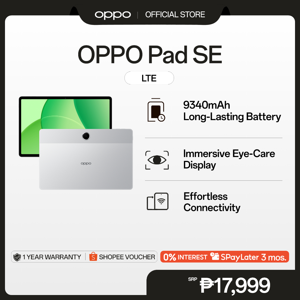 [3 Months 0% SPayLater] OPPO Pad SE | 9340mAh Long-Lasting Battery | Immersive Eye-Care Display