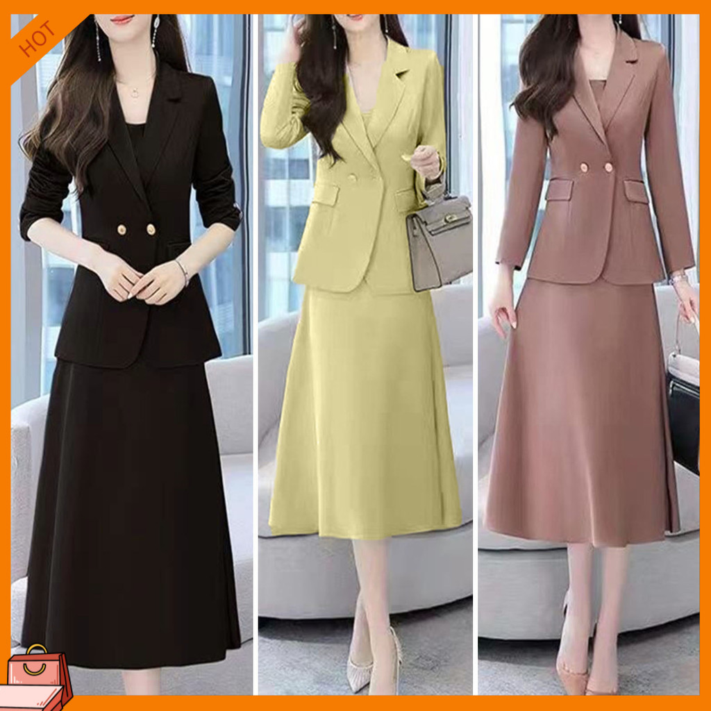 [New] Lady Office Wear Clothes Women Commute Clothes Chic Women's Business Suit Set with Coat and Dress Perfect for Office and Formal Events Trendy Southeast Asian Fashion