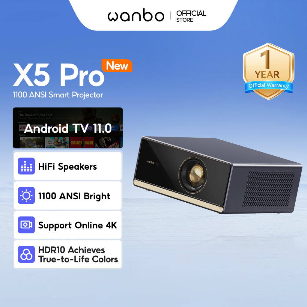 [New] Wanbo X5 Pro New Smart Projector 1100ANSI Support 4K HD Google TV Auto Focus Home Cinema