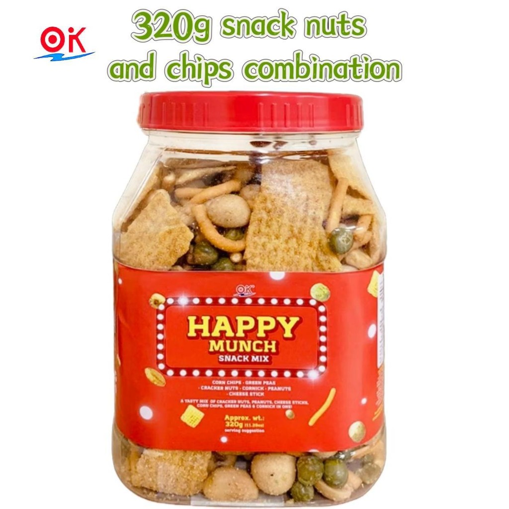 [OK Snacks|HAPPY MUNCH 320g serving size snack nuts and potato chips combination Crunchy