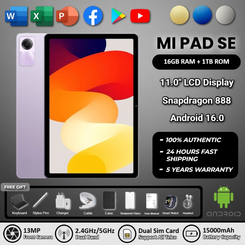 MI Pad SE Android Tablet – 16GB RAM, 1TB Storage, 5G Dual SIM, Stylus Pen, Perfect for Study & Work