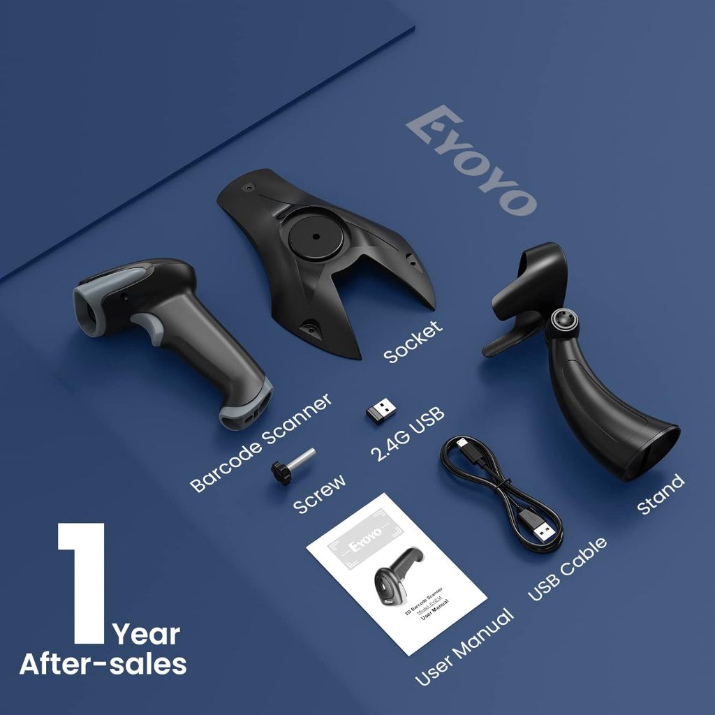 [PH Stock]Eyoyo 3 in 1 Bluetooth Wireless 2.4G USB Wired 1D 2D QR Bar Code Reader CCD Barcode Scanner w/Stand