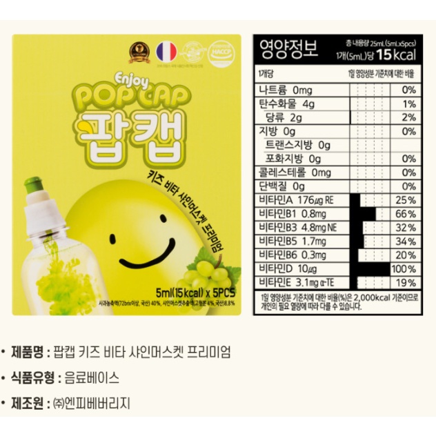 [POPCAP] Premium Bottle Cap Vitamin 8 Types of Taste, Diet Vitamin (18KCAL)