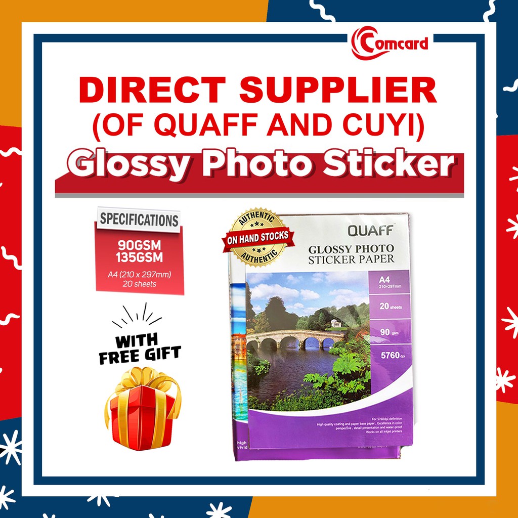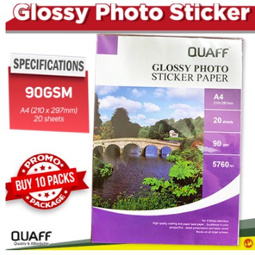 [PROMO 10 PACKS] A4 Size QUAFF 90 | 135 GSM Glossy Sticker Paper (20 Sheets/Pack) | CPM