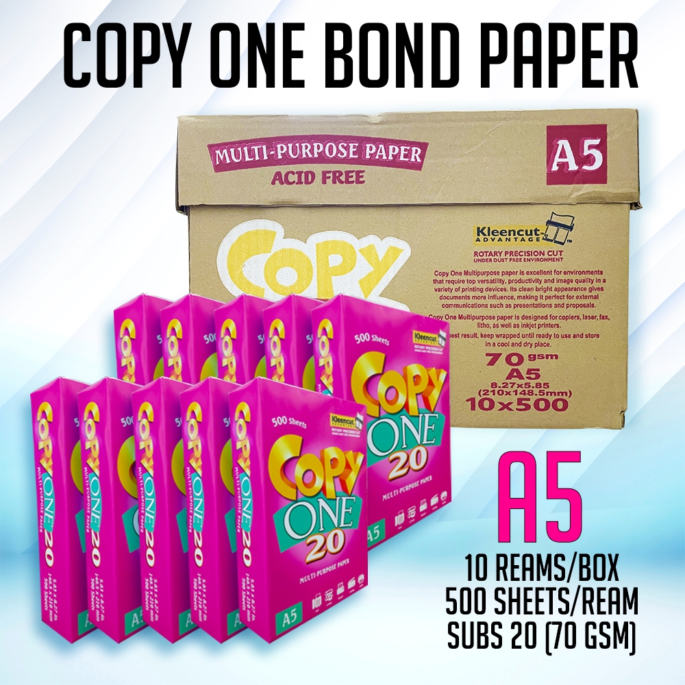 [PROMO PACKAGE] Bond Paper 70GSM Substance 20 (5 reams per box) HARD COPY / COPY ONE