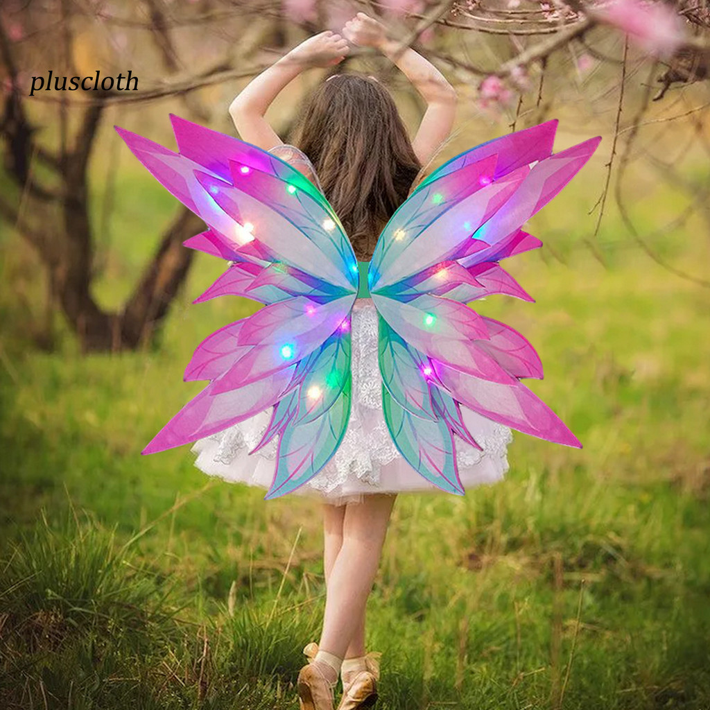 <Pluscloth> Vivid and Colorful Fairy Wings Easy to Move and Play with Fairy Wings Enchanting Glowing Butterfly Wings Light Up Fairy Costume Cosplay Gift for Girls Popular Southeast