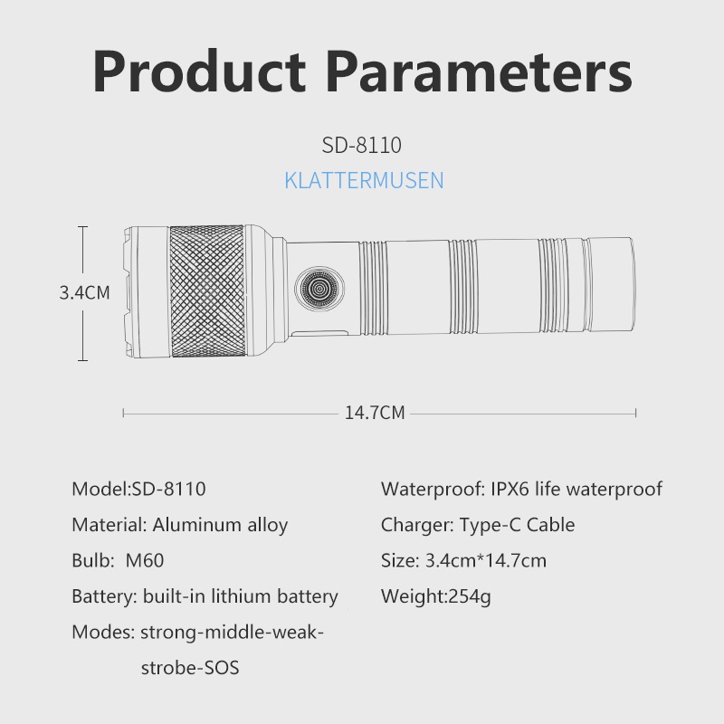 <Portable> Smiling Shark SD8110 Flashlight Led M60 6000LM Flash Light Rechargeable 5Modes Waterproof