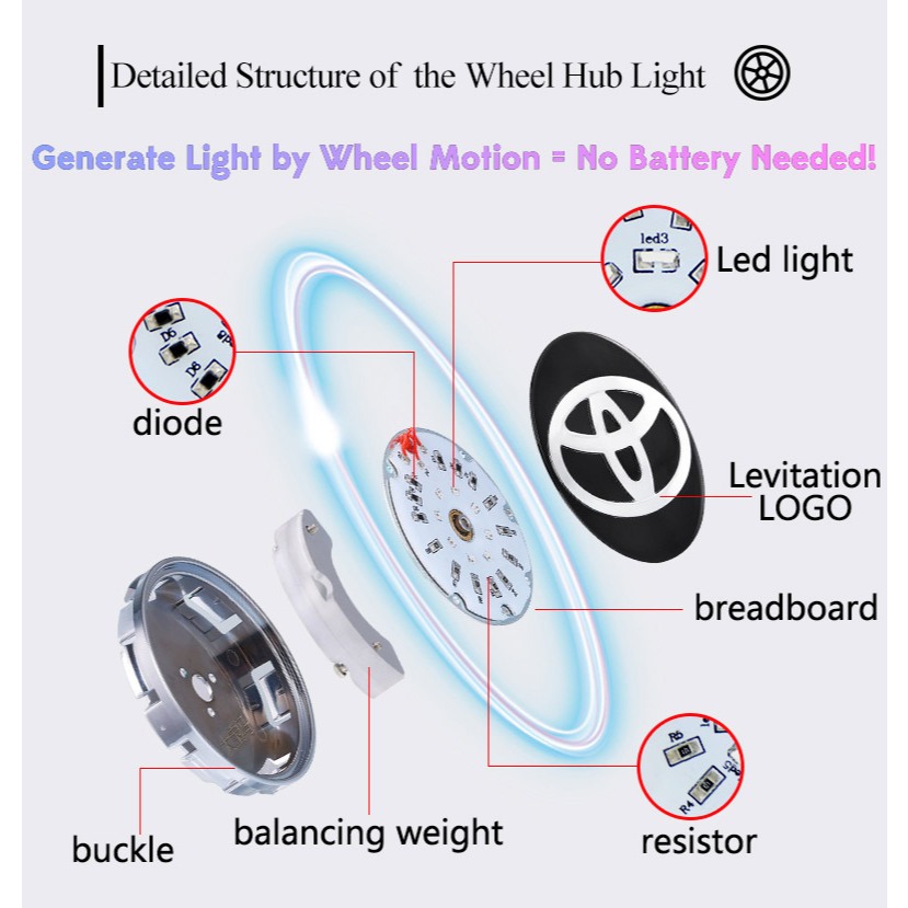 [Power Generation] Magnetic Levitation Wheel Hub Lights for Toyota - Waterproof Dustproof Auto Logo LED Car Accessories