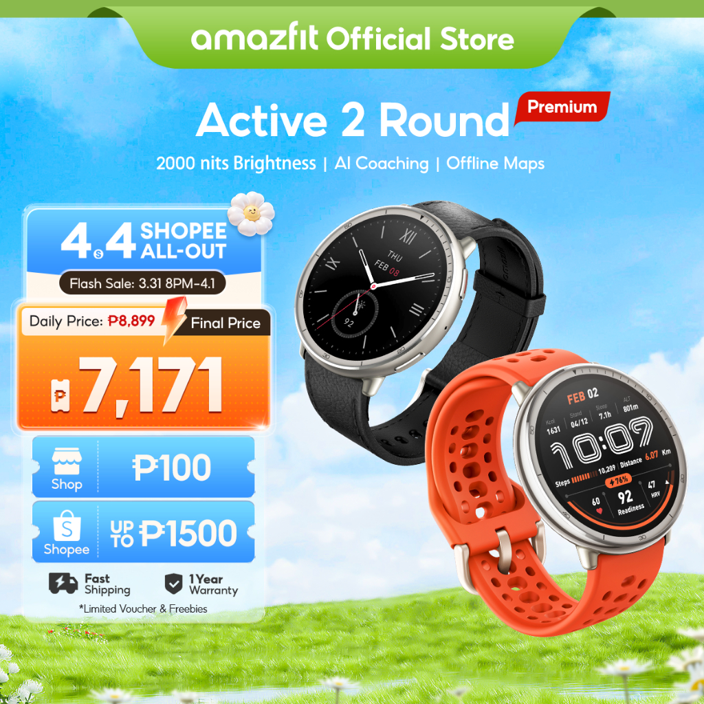 [Premium] Amazfit Active 2 Round 44mm Smart Watch 1.32" AMOLED GPS Bluetooth Phone Call AI Coaching