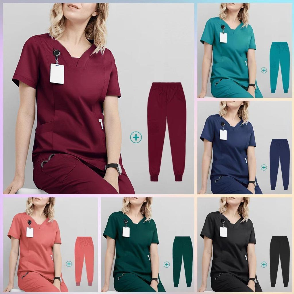 [READY STOCK]Medical Scrub Baju Scrub Multicolor Short-Sleeved Pharmacy Nurse Uniform Hospital