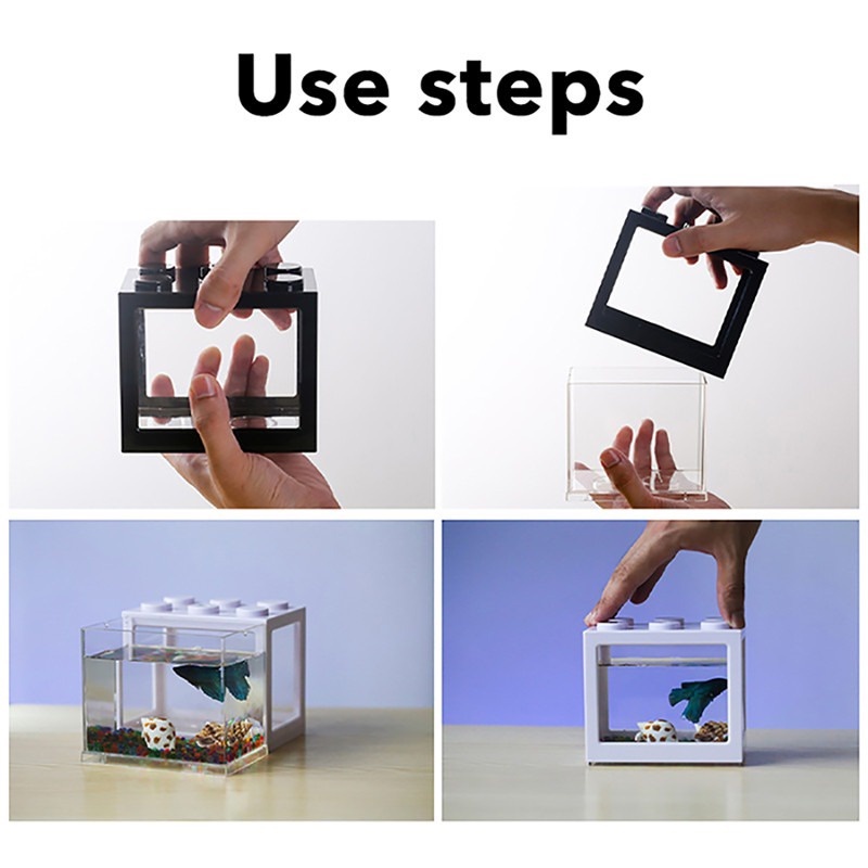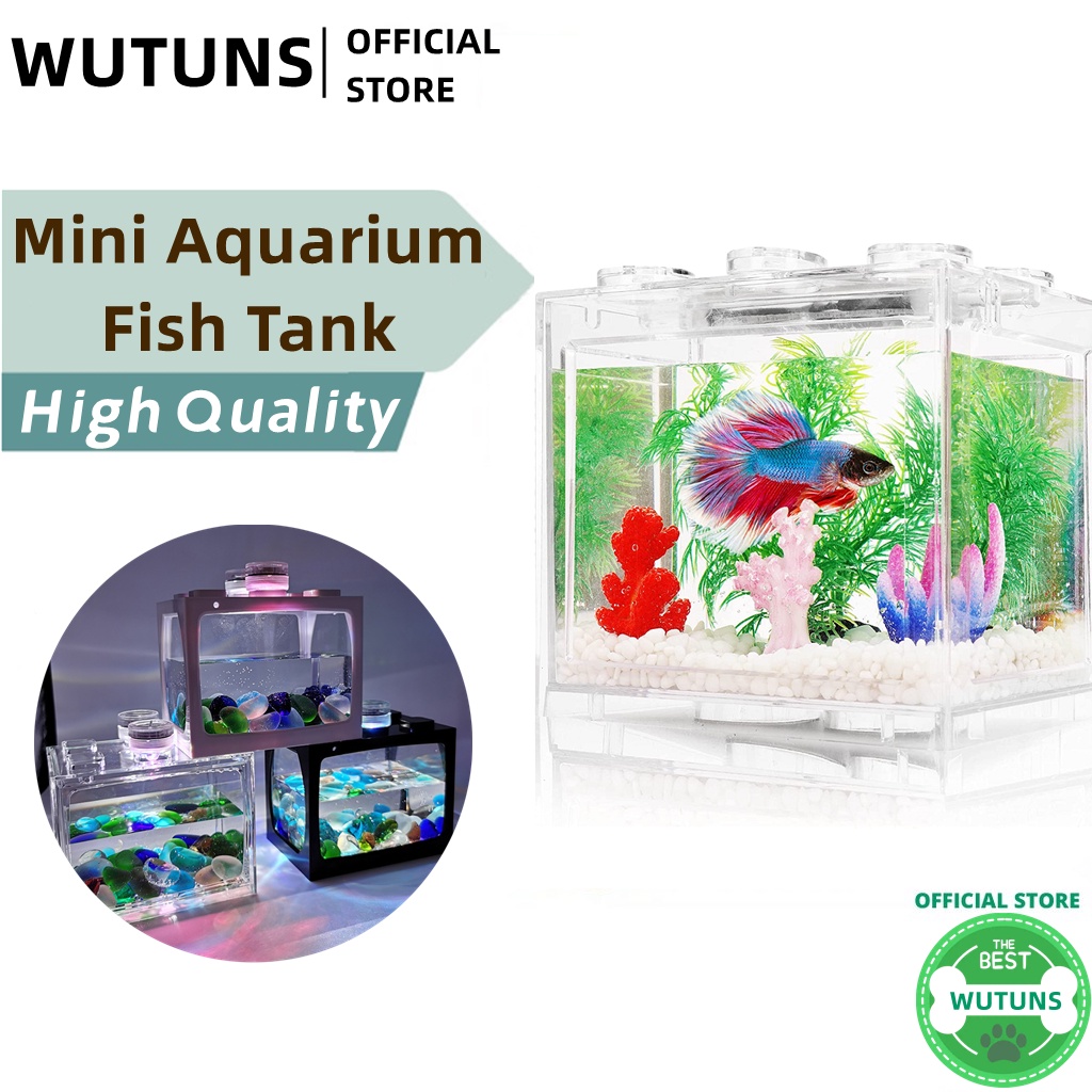 [READY STOCK]Mini Aquarium Fish Box Home with LED light and luminous stone For Small Betta Fish