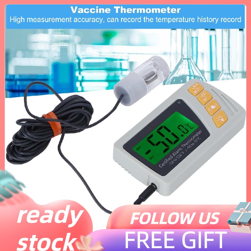 [READY STOCK] Vaccine Thermometer with Propylene Glycol Bottle Probe Acoustic Alarm for Incubator Cooler