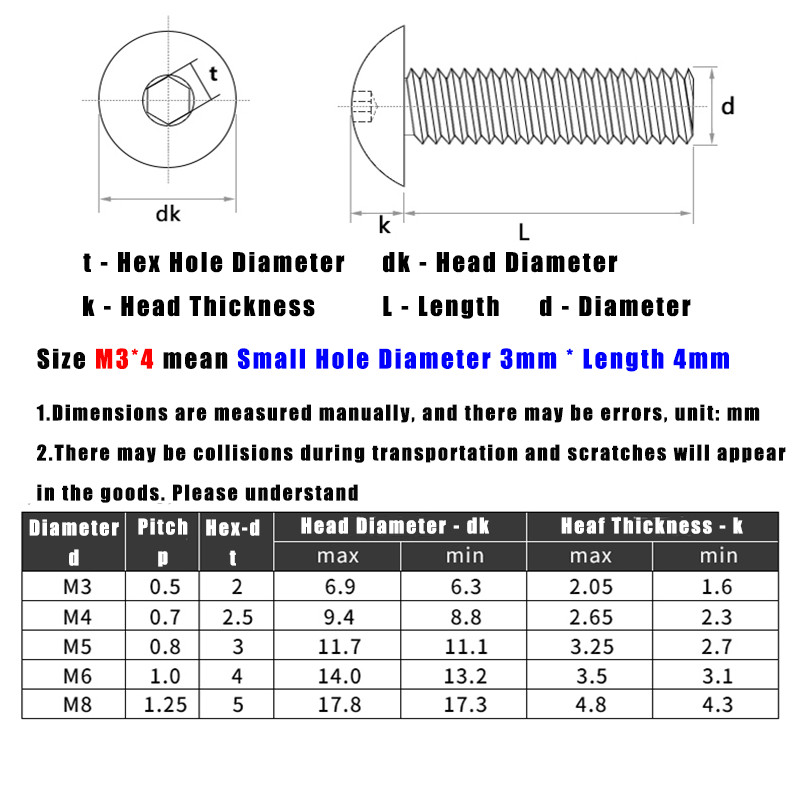 [RL] Hex Socket Screw Pan Head Allen Key Bolt 304 Stainless Steel Half Round Screws M4 M5 M6 Length 4-100mm