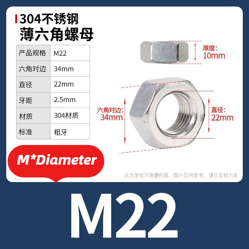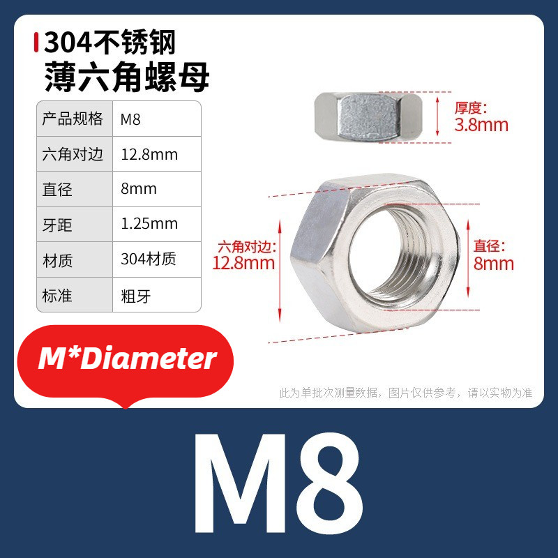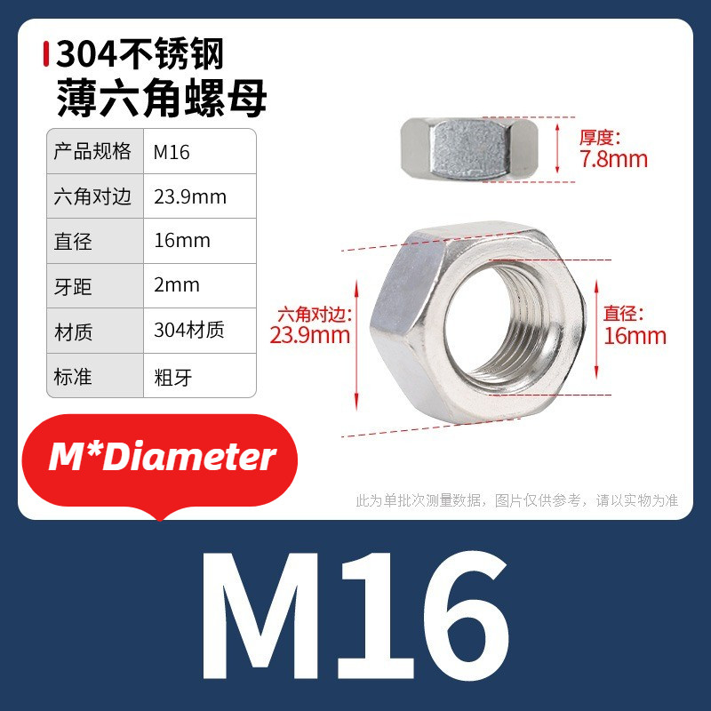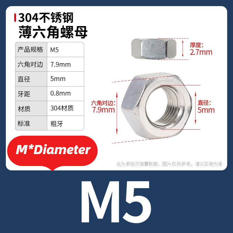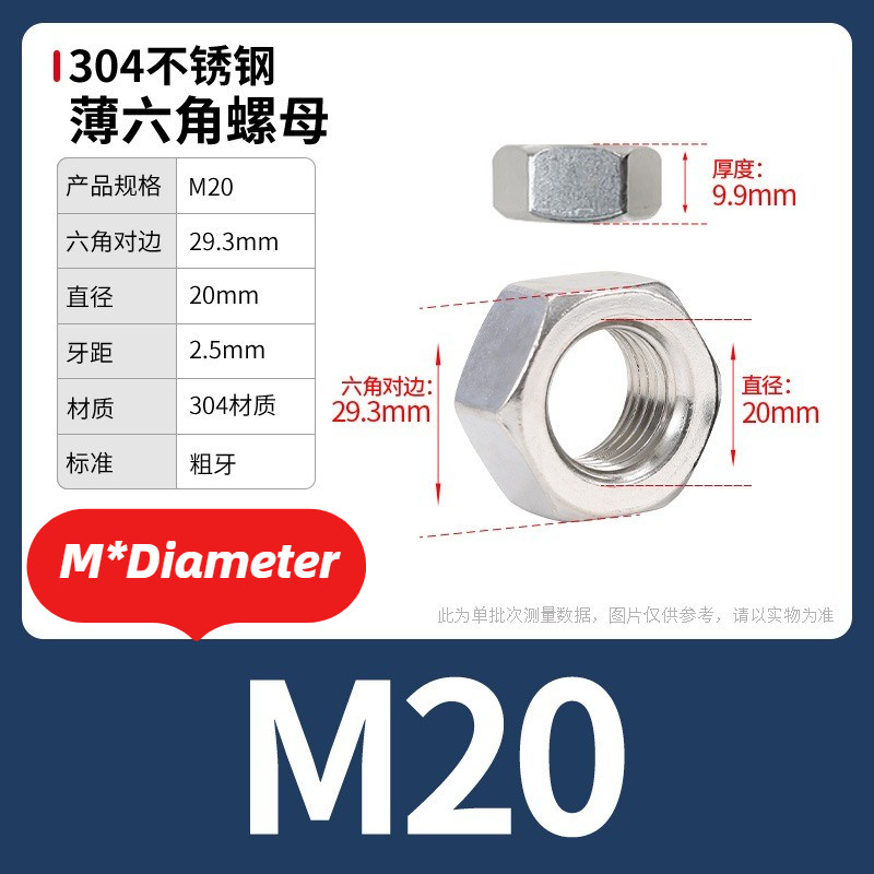 [RL] M2-M30 Jam Nut 304 Stainless Steel Thin Hex Nuts M3 M4 M5 M6 M8 M10 M12 M14 M16 M18 M20 M22 M24 M26 M28