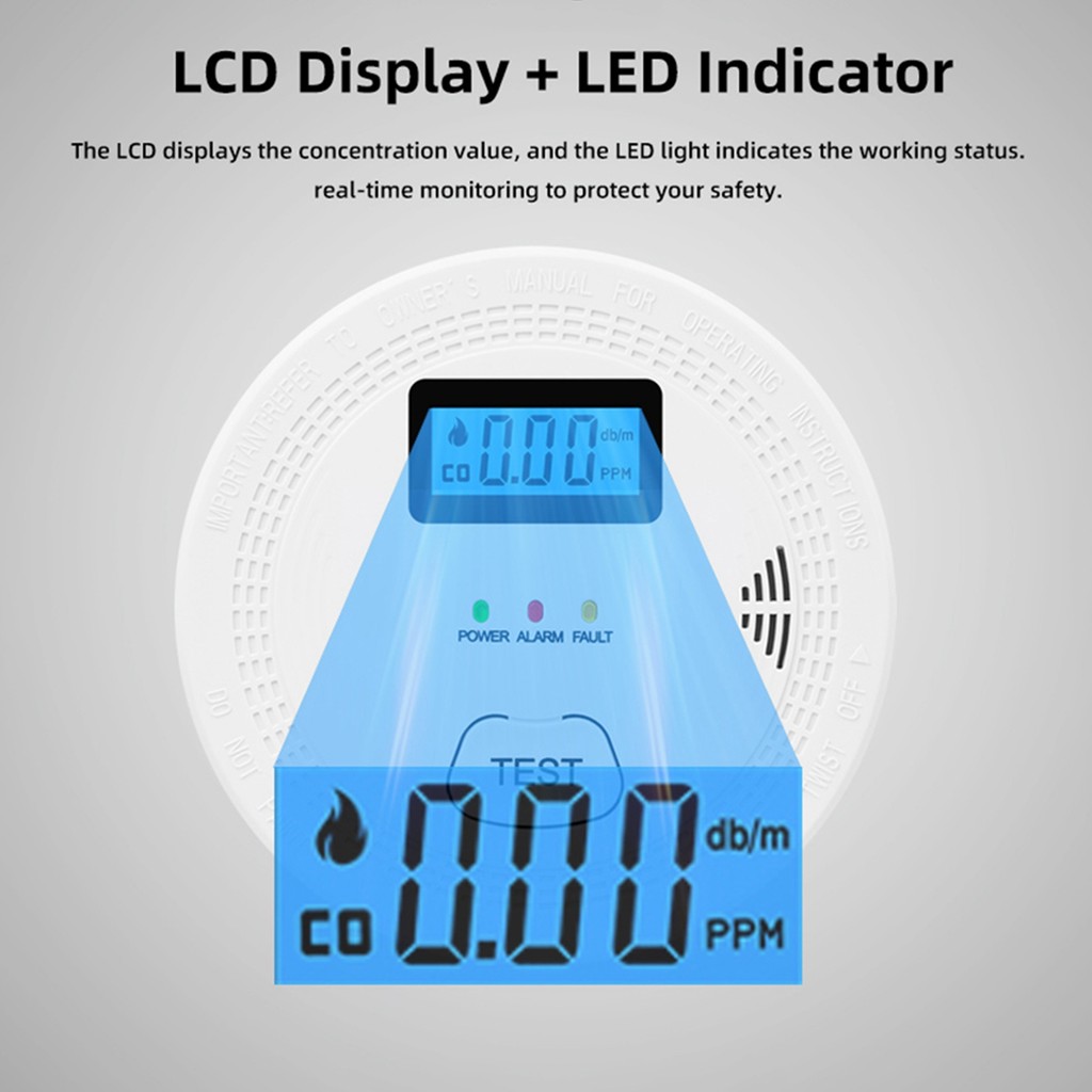[Ready&COD] Smoke and Carbon Monoxide Detector Dual High Stability Sensors Smart Smoke Detector Sound Light Alarm Ant-RFI Automatic Reset Low Battery Warning Smoke Alarm Detector