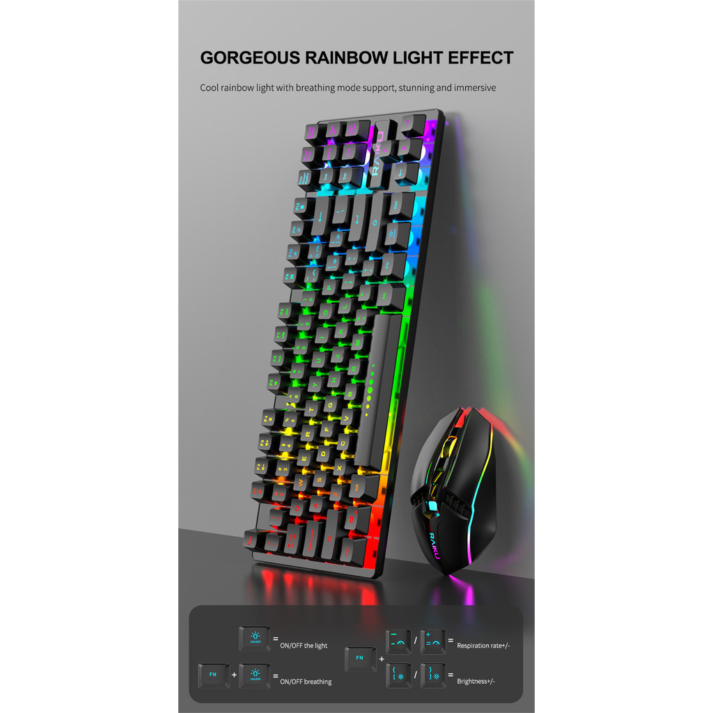 [Ready] Rgb Gaming Keyboard And Mouse Set Mechanical Touch Full 87 Keys R905 Led Rainbow Backlit Wireless Rechargeable Keyboard Mouse Combo