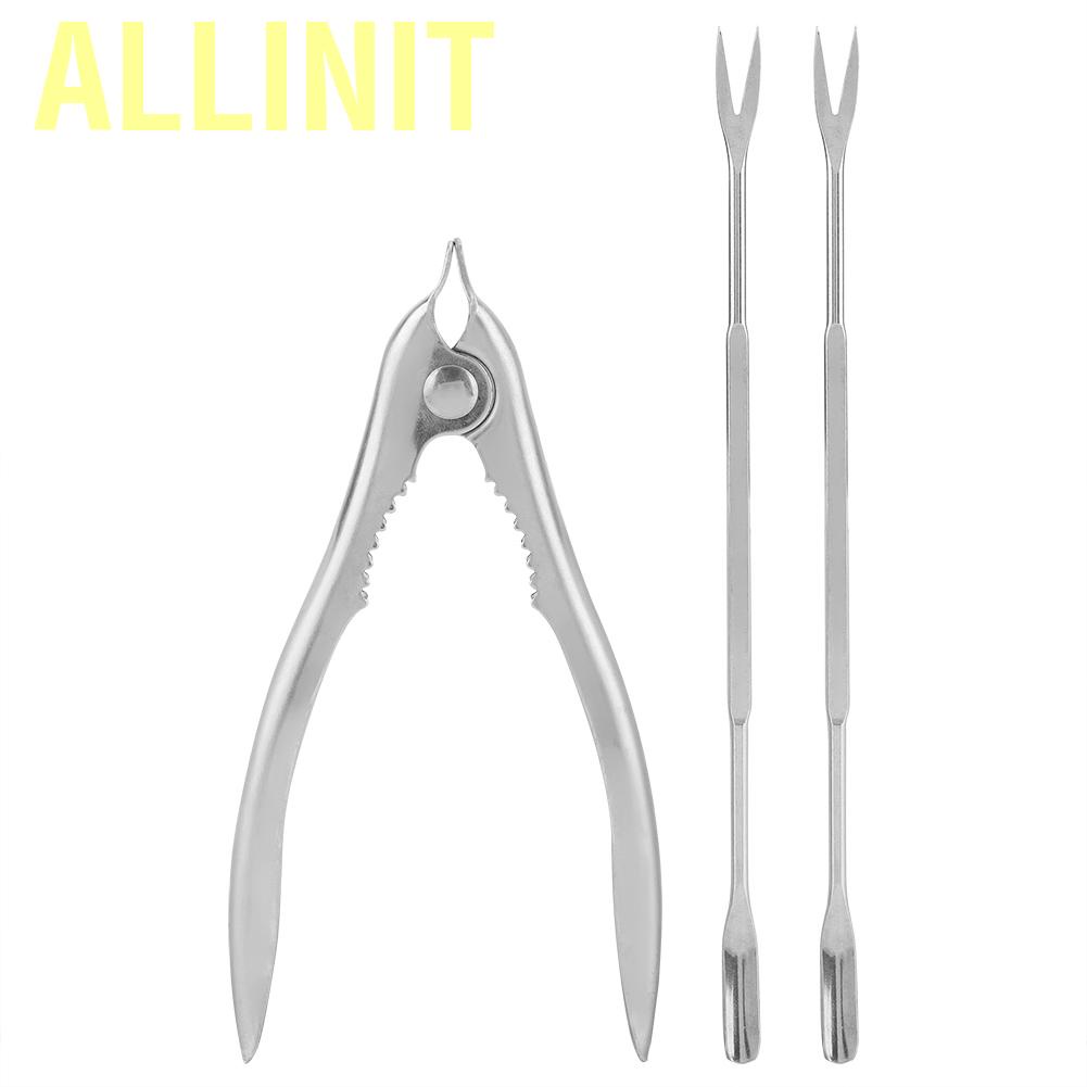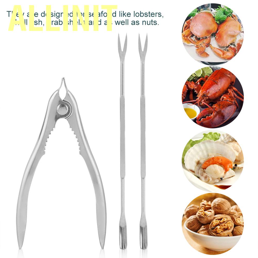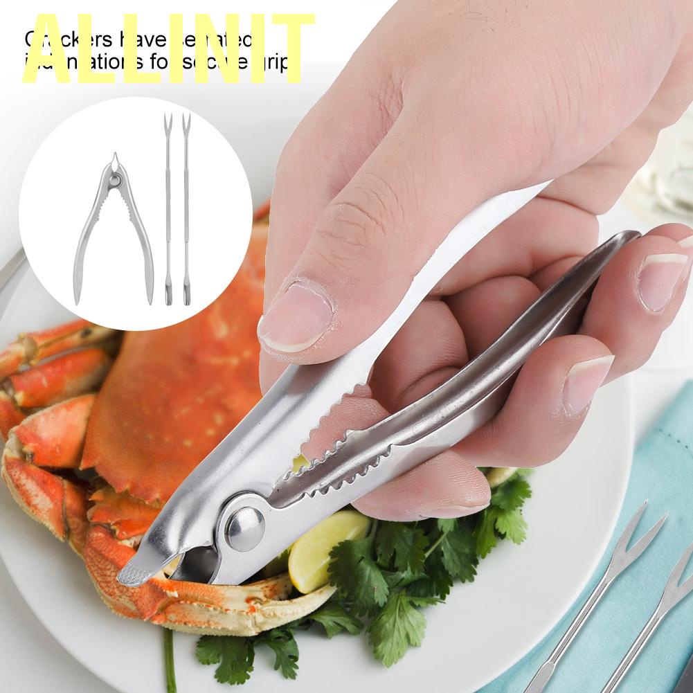 [Ready Stock] ALLINIT Lobster Crab Cracker Shell Claw Seafood Forks Nuts Opener Stainless steel crab eating tool three-piece claws needles spoons seafood tools