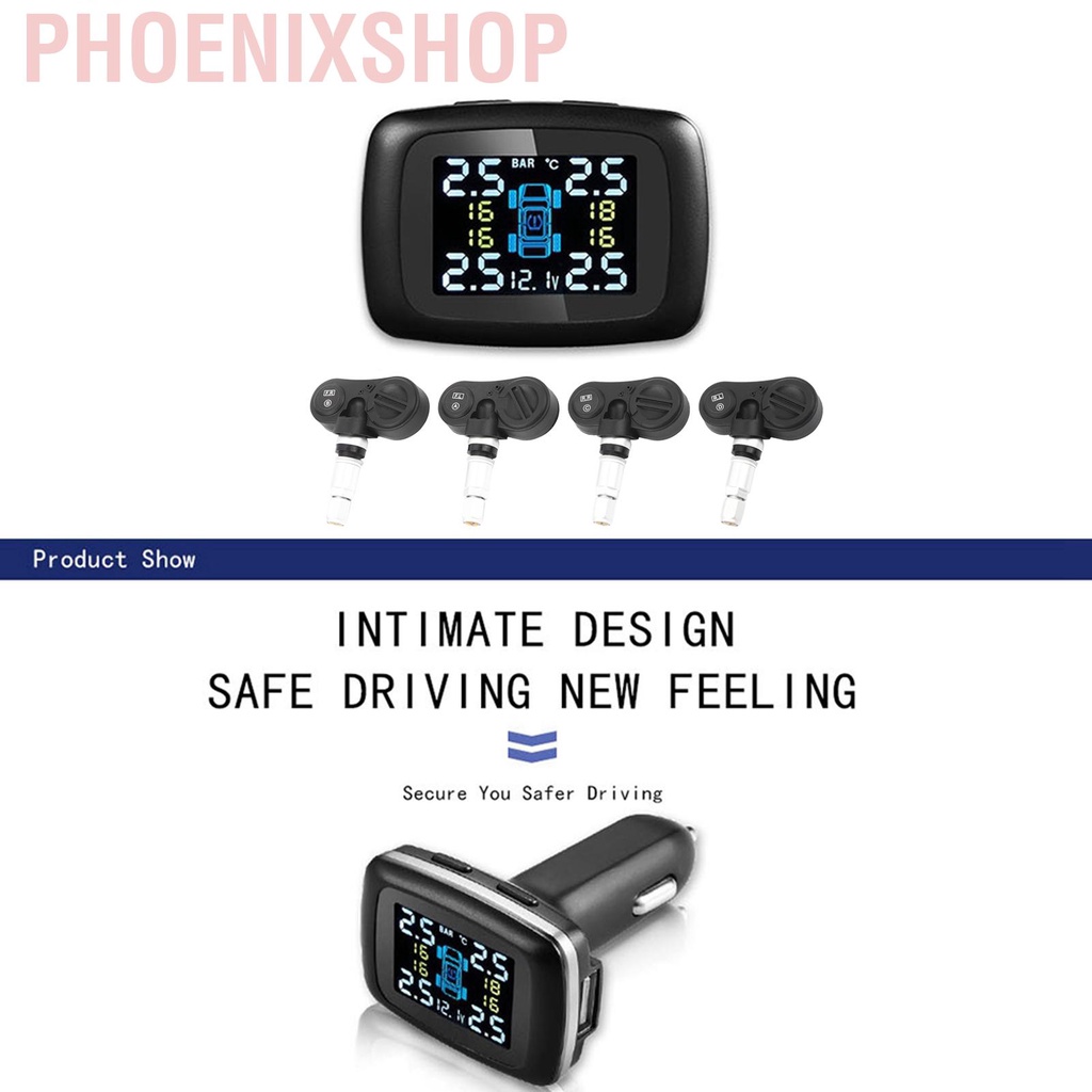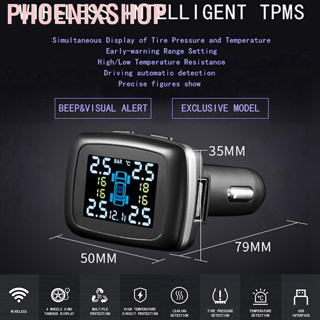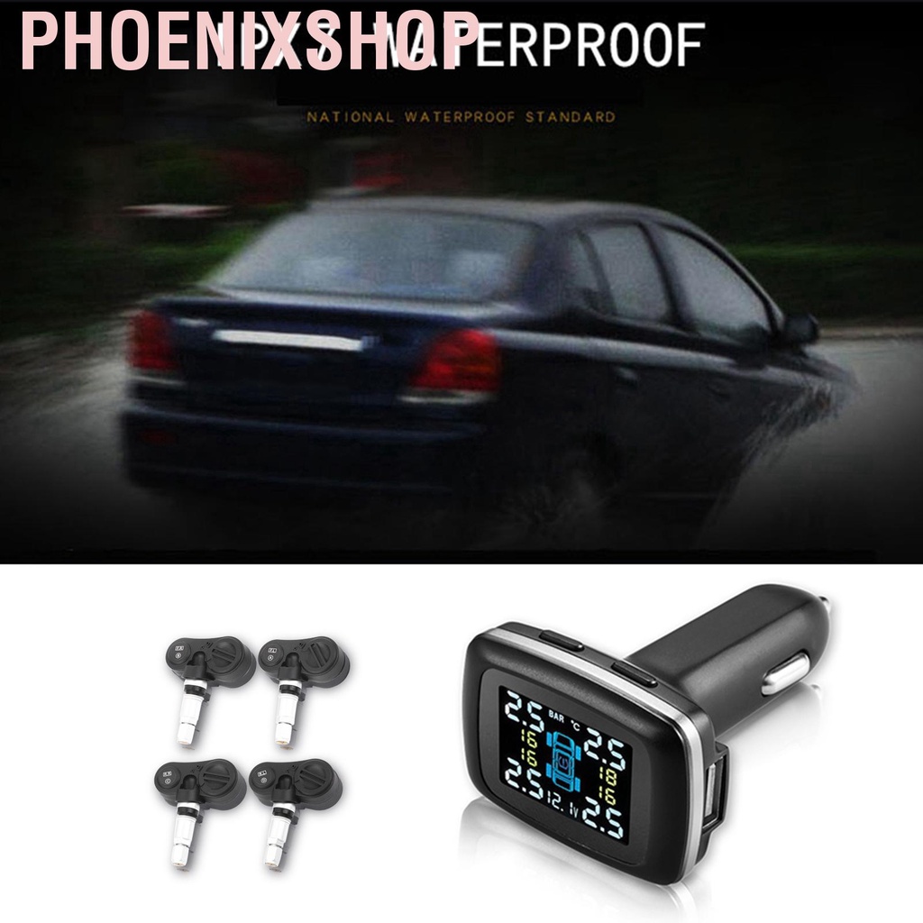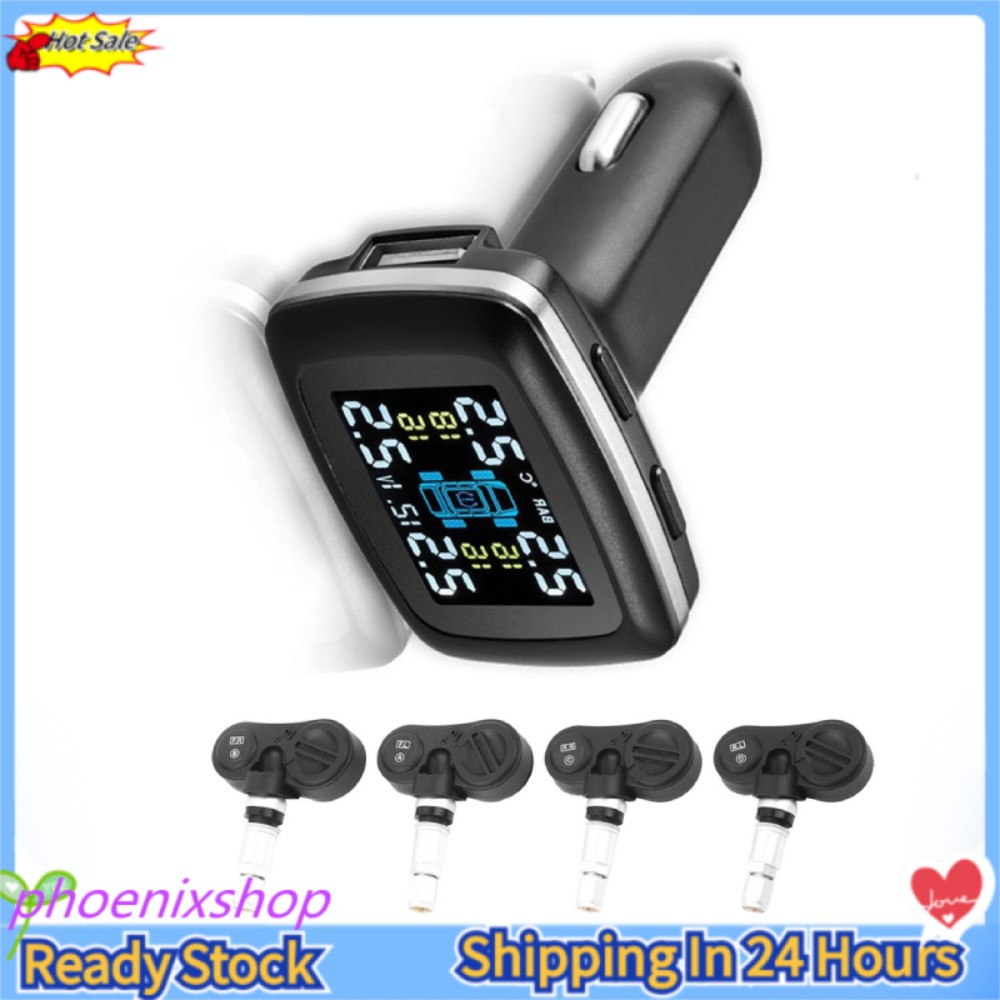 [Ready Stock] Car Intelligent TPMS Cigarette Lighter Tire Pressure Monitoring System with 4 Internal Sensors