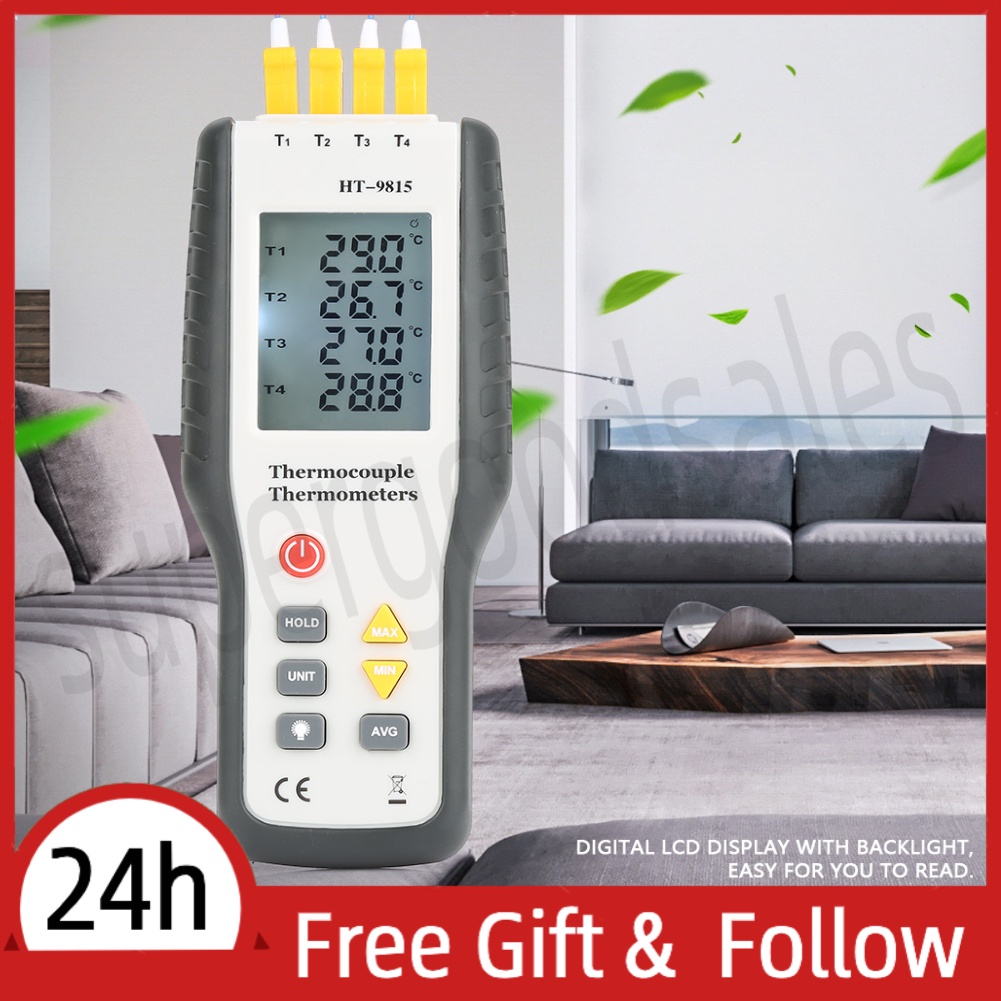 [Ready Stock] HT-9815 4-Channel K Type Digital Thermocouple Sensor Thermometer