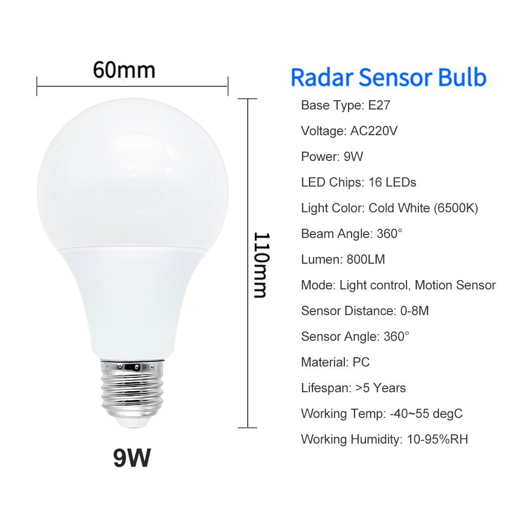 [Ready Stock ] High Quality sensor light sensor lamp Led bulb Night Light E27 Bulb 7W 9W 12W PIR Motion Sensor LED Bulb