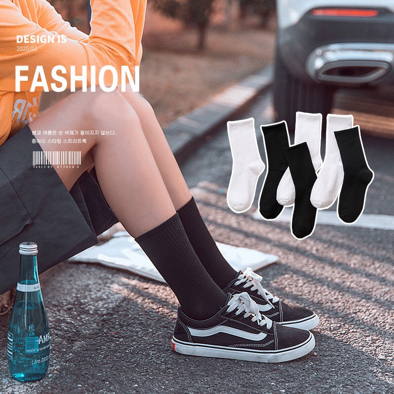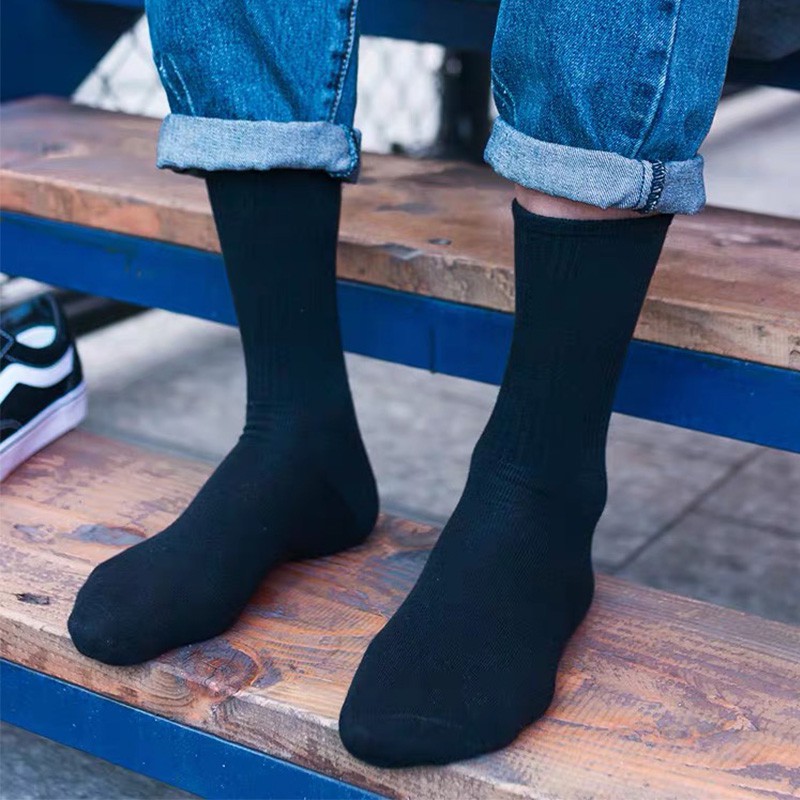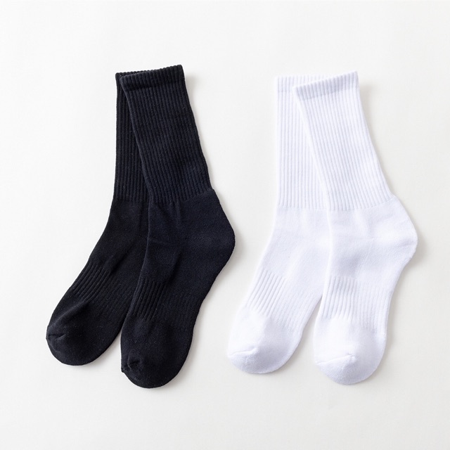 [Ready Stock] Men's Long Sports Socks Cotton Plain Black/White for boys for students 1 pair Cod