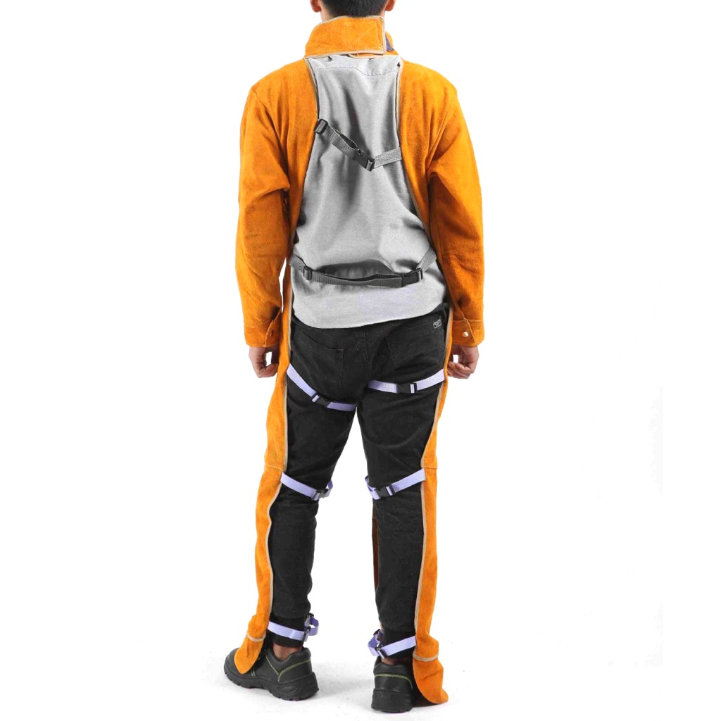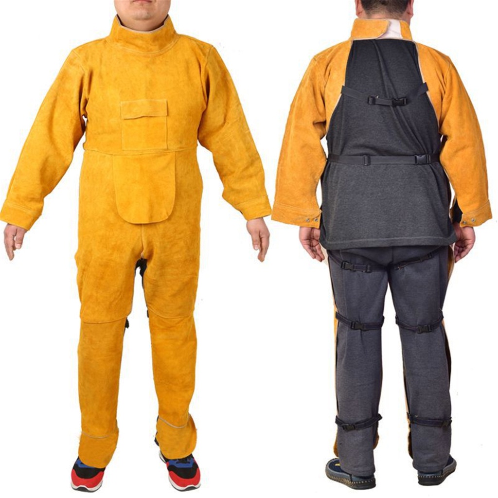 [Ready Stock]Safety Clothing Leather Welding Protective Welder Suit Clothes Yellow Heat Flame Adiabatic Cowhide Workwear