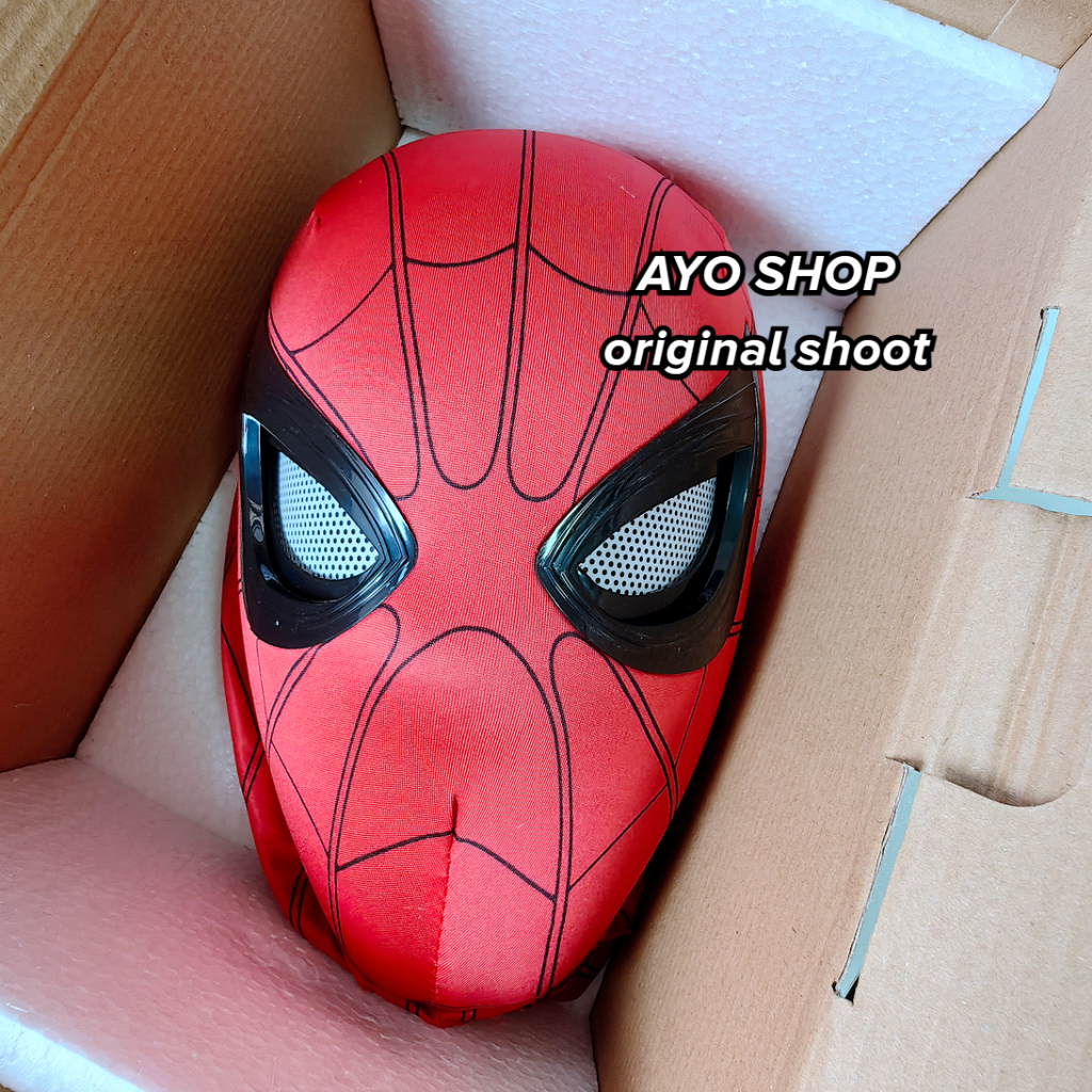 [Ready Stock] Spider-Man Headgear Electric Chin Control Movable Eyes Spiderman Mask moving eye Costume for masquerade Extraordinary Heroes Party Essentials Remote Control Mask Gifts for men and boyfriends