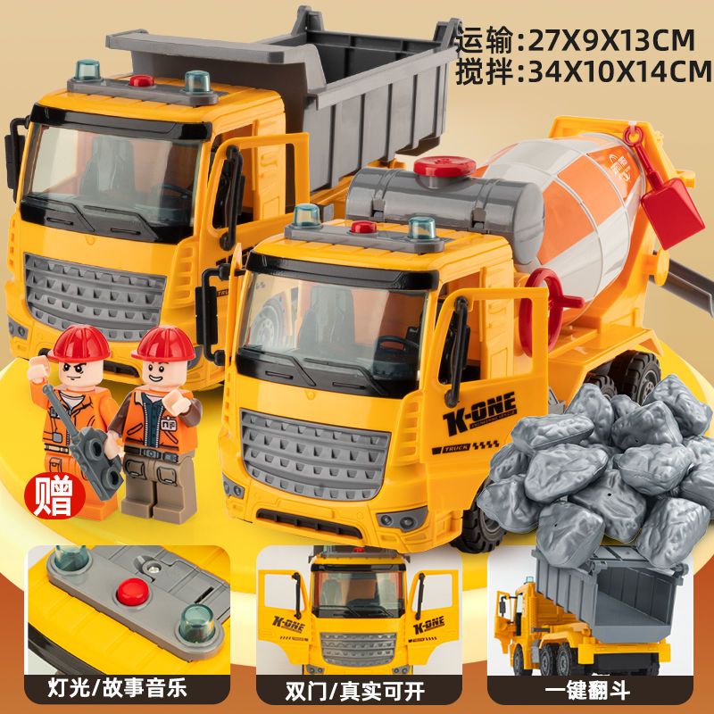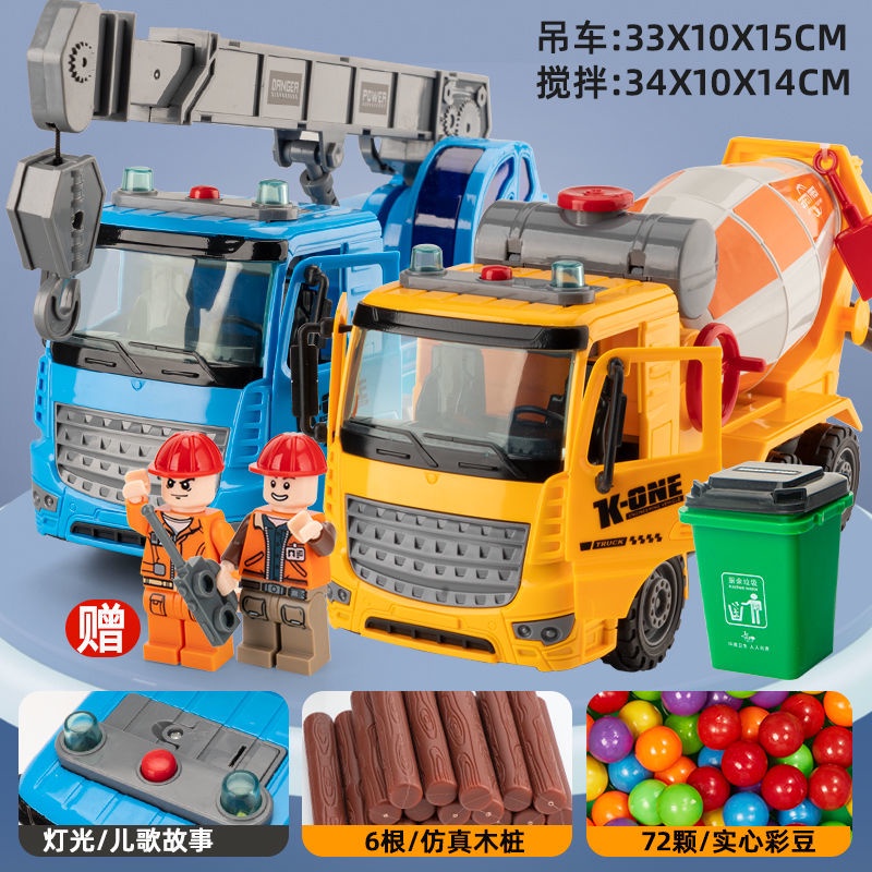 [Ready Stock] cement truck toy cement mixer toy mixer toys for kids Dischargeable Cement Truck Large Mixer Sound Light Toy Car Children's Crane Model