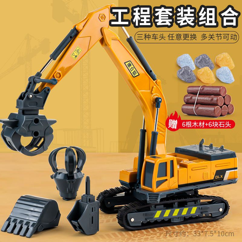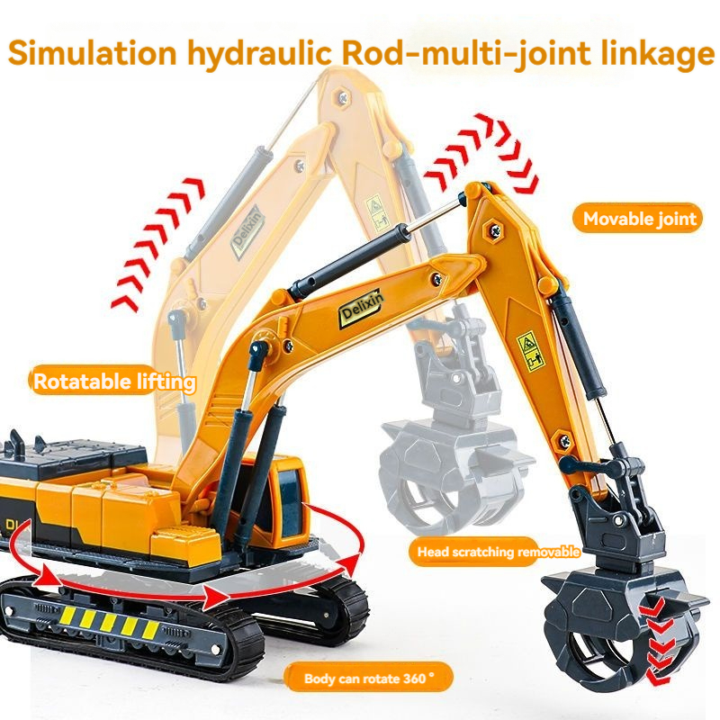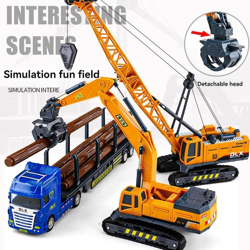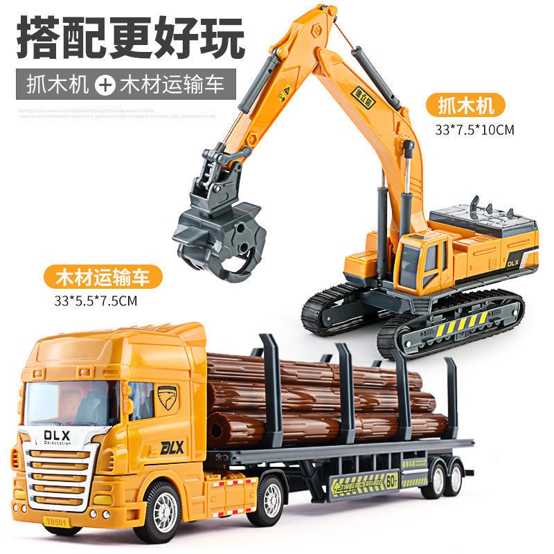 [Ready Stock] excavator toy big ride crane truck toys Wood Grabber Toy Simulation Engineering Vehicle Model Children's Excavator Stone Grabber Crusher Wood Transporter Crane Crane