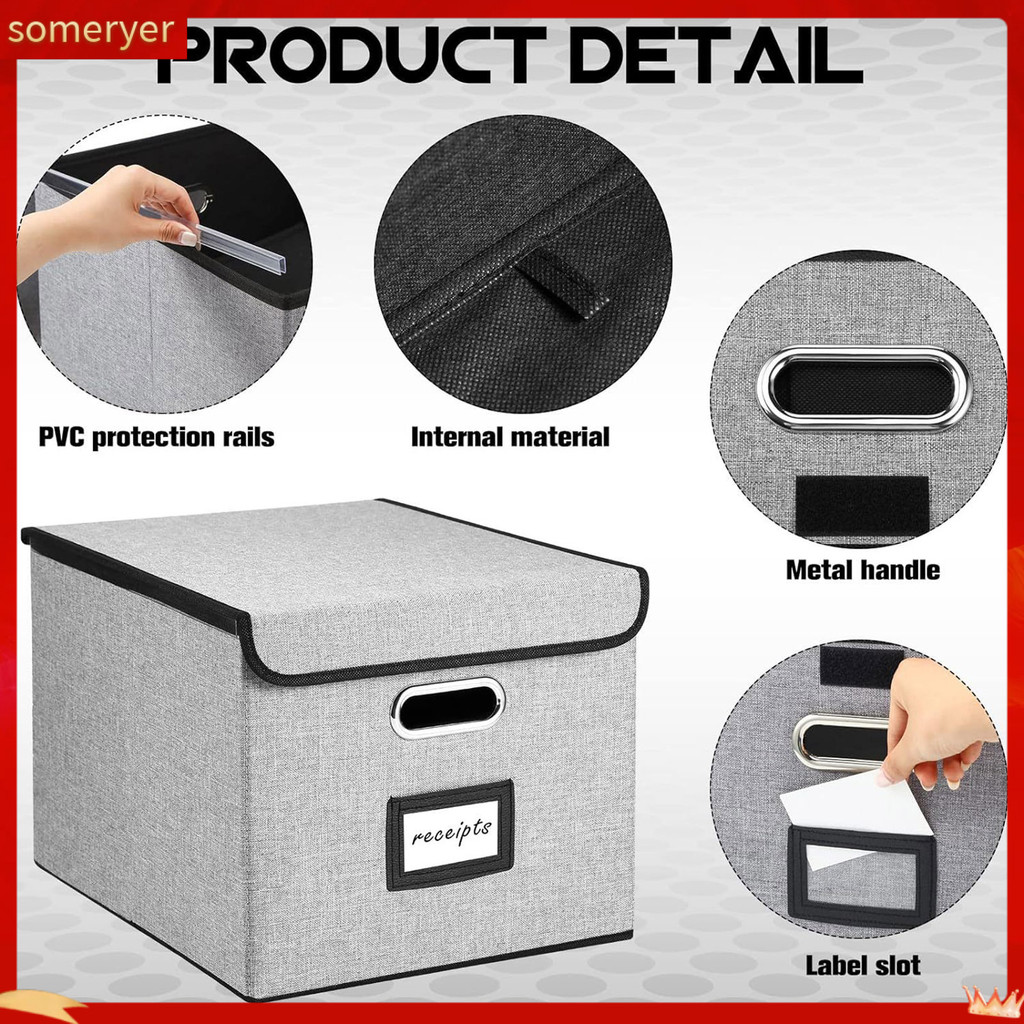 [Ready stock] Folding File Box Legal Size File Organizer Foldable File Storage Box with Lid and Metal Handle for Office Documents Legal/letter Size Organizer Bin for Southeast Buy