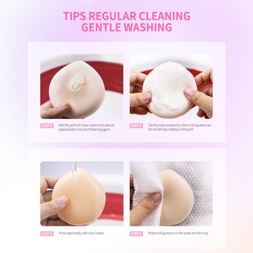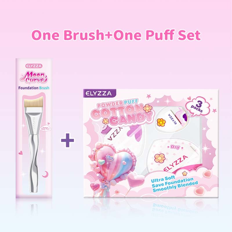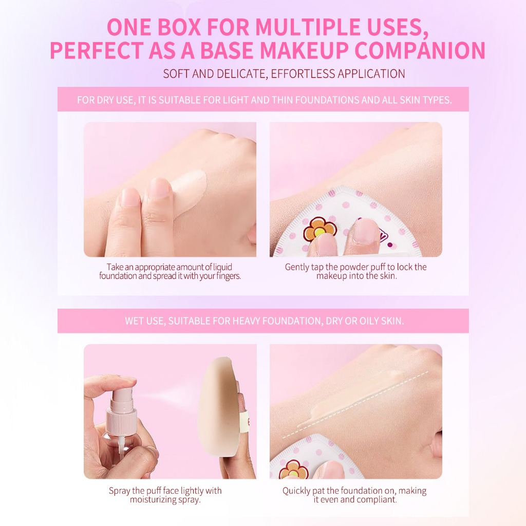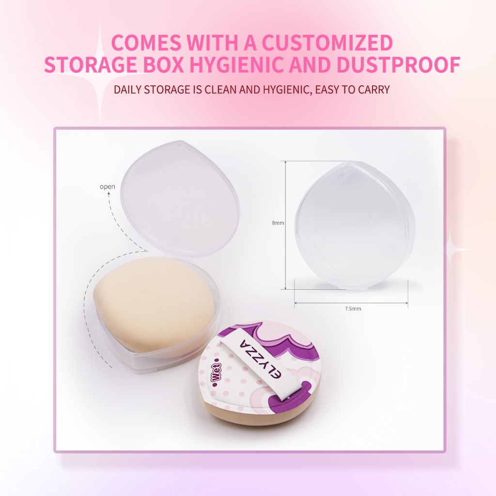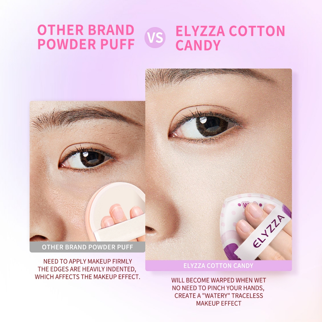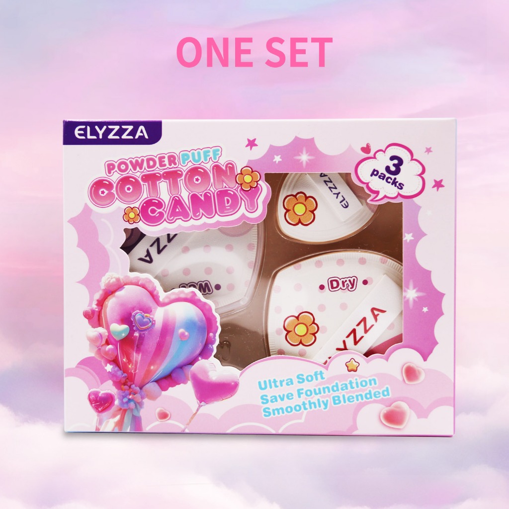 [Sent From Manila] Elyzza Cotton Candy Puff Set: 1 Dry Puff, 1 Wet Puff, 1 Finger Puff with Storage Case Rucybell Material Soft & Versatile Makeup Applicators