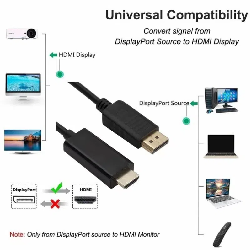 [Shopee Choice] 1.8m 3m DisplayPort to HDMI Cable Male to Male Adapter for PC HDTV Projector Laptop 4K Video Audio
