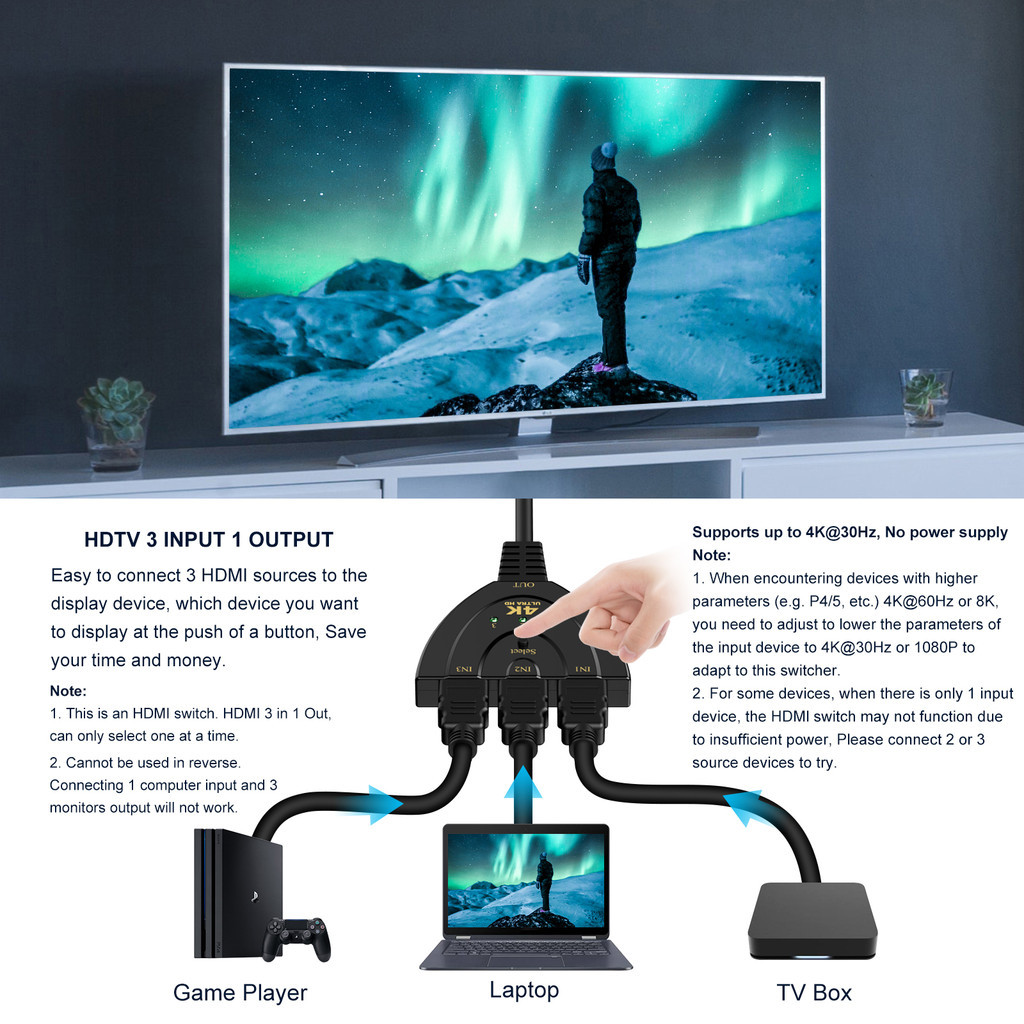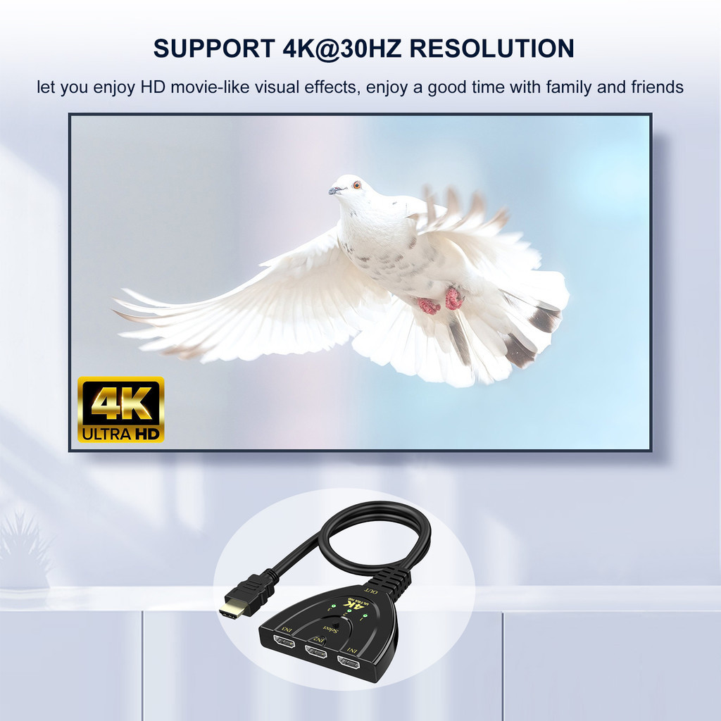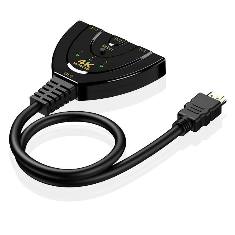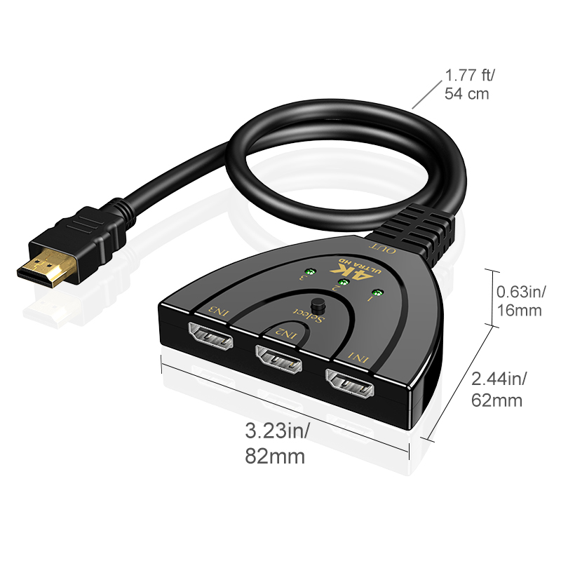 [Shopee Choice] HDMI Switch 4K 3 Port HDMI Splitter 3 in 1 Out HDMI Switcher with Pigtail HDMI Cable Multi hdmi Adapter Supports Full HD 1080P 3D for TV Xbox PS4 PC HDTV