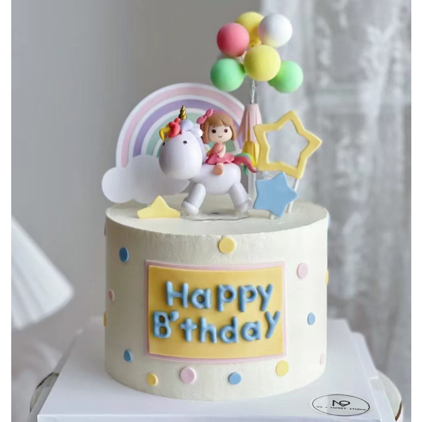 [Spot] Big head pink unicorn girl cute birthday cake decoration decoration dessert table baking party dress up accessories