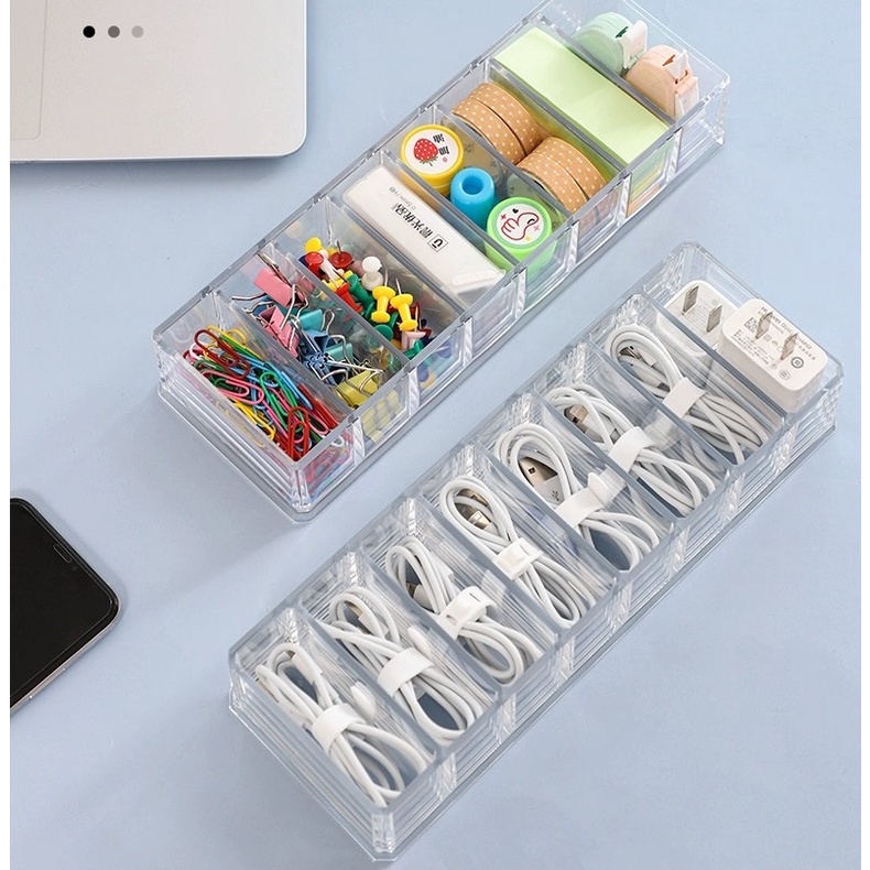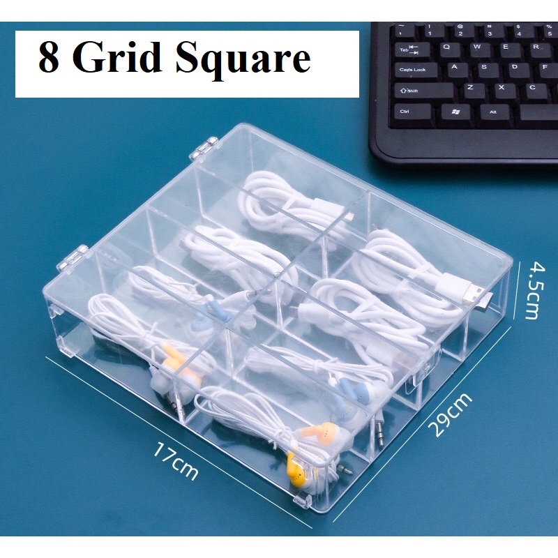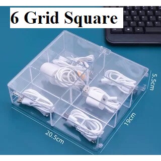 [Subtle] Clear Acrylic Multi - Grid Data Line Storage Box With Cover