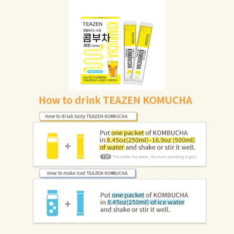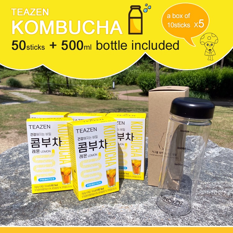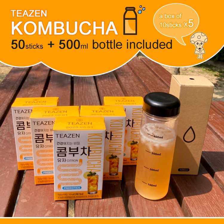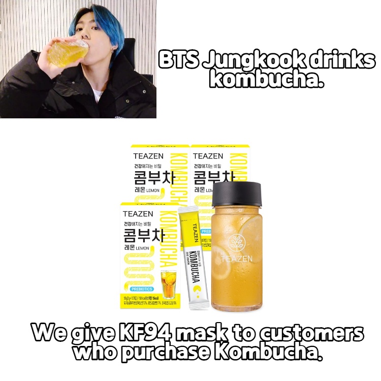 [TEAZEN] BTS Jungkook also drinks kombucha lemon, Citron, Berry flavor/15 Kcal Healthy Tea 50 Sticks + 500 ml BOTTLE (store original product)