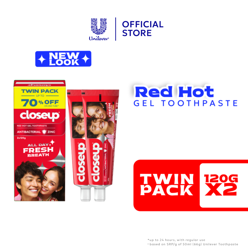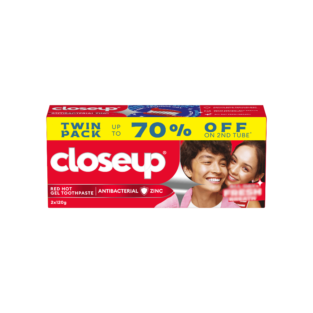 Closeup Gel Toothpaste with Antibacterial Zinc Red Hot 120g Twin Pack