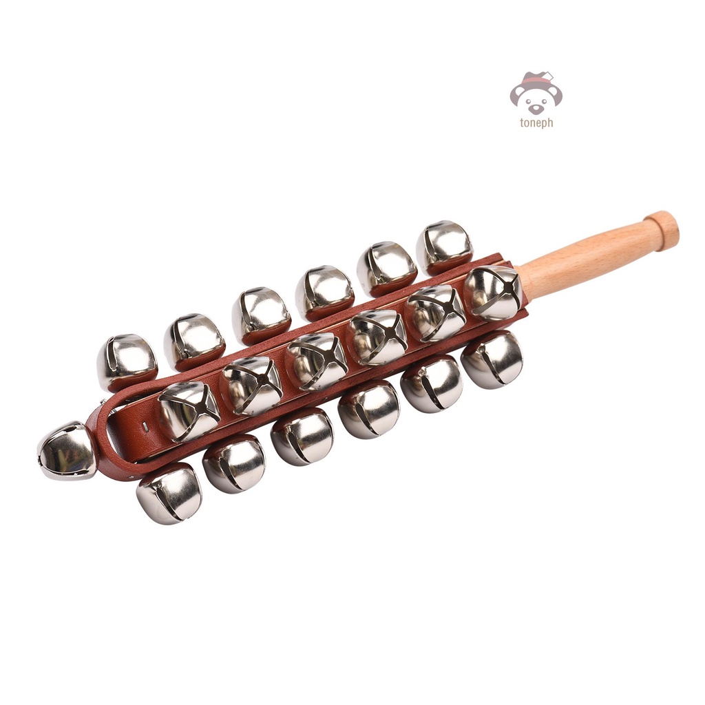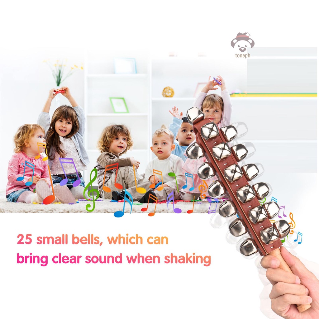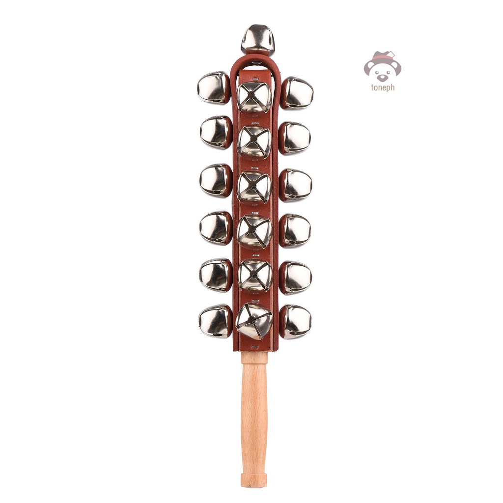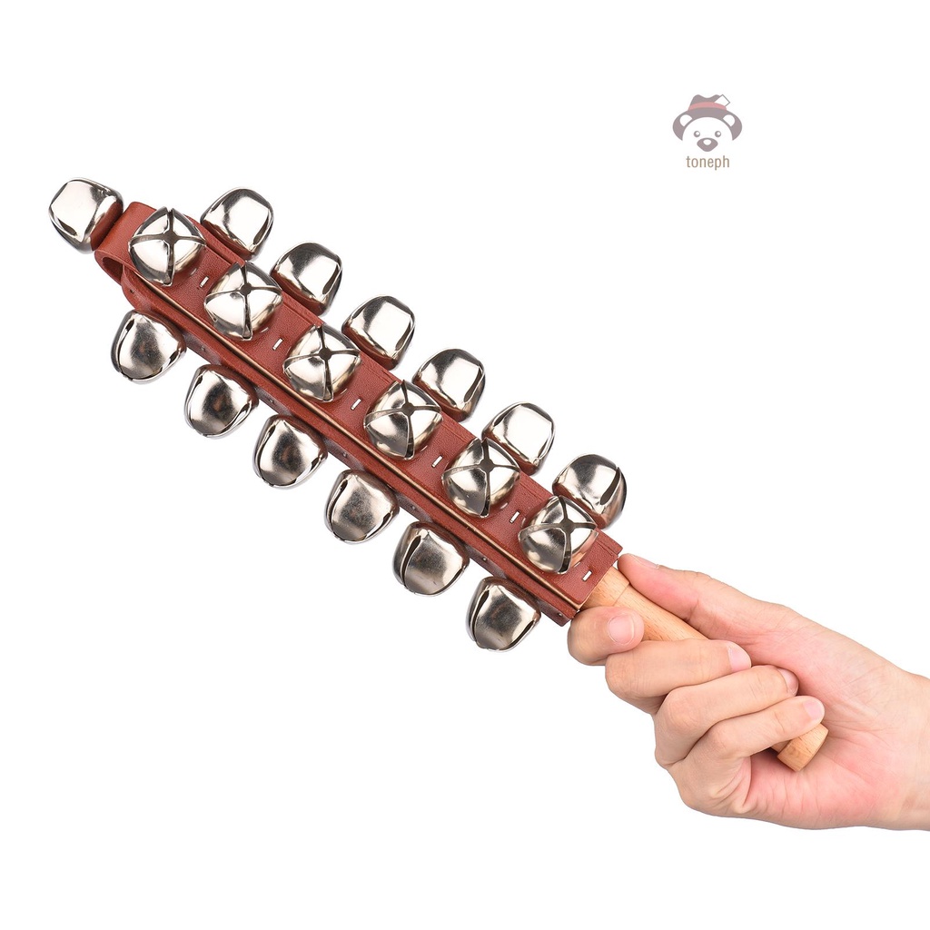 [Topiph]Hand Jingle Bells Hand Sleigh Bells Wooden Shaker Jingle Bells Stick Musical Percussion Instrument Bells for Holiday Home Christmas Decoration