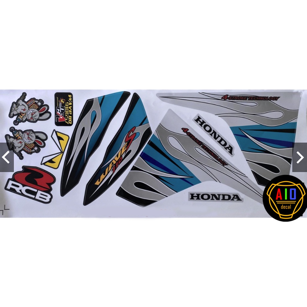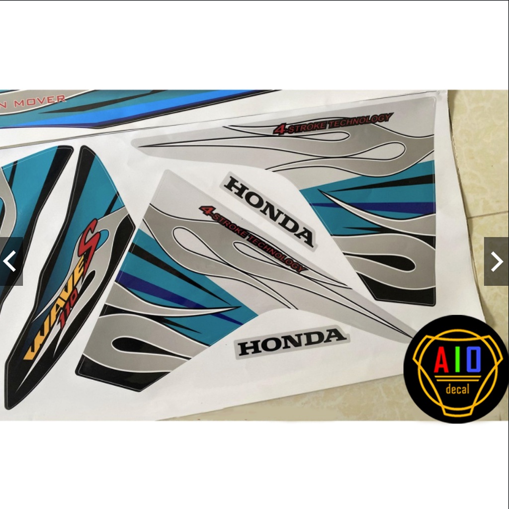 [Type 1] Wave 110cc Green Fire Removable Sticker Ver 5 (2017-2021) - Real Photo (Wave Decal) (Wave Car Sticker)