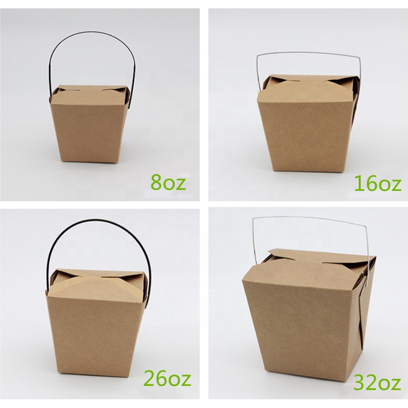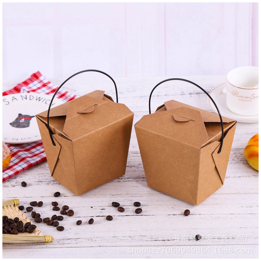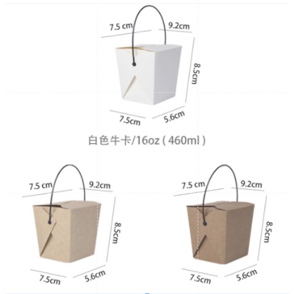 [WHOLESALE] 100pcs Rice in a Box Take Out box handle Noodles Food Packaging (Kraft Brown & White)