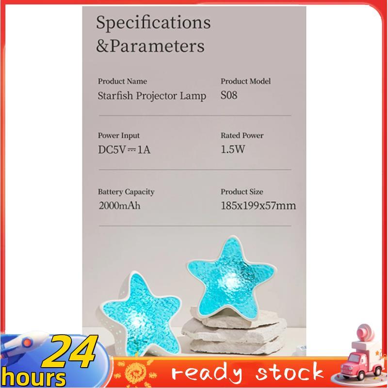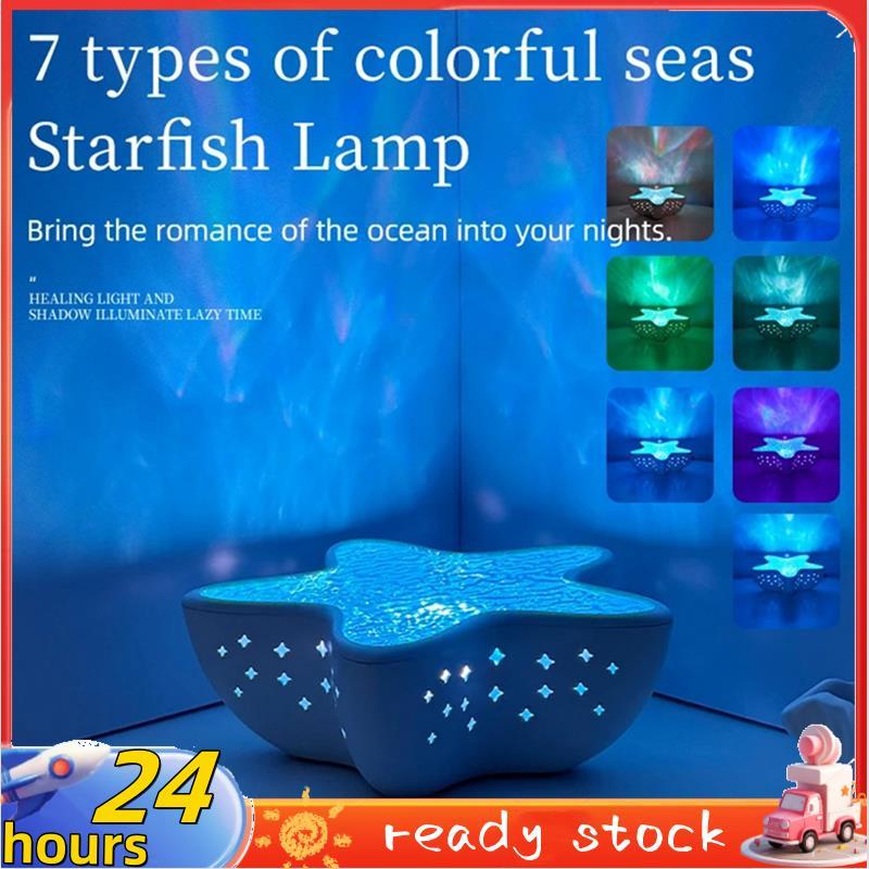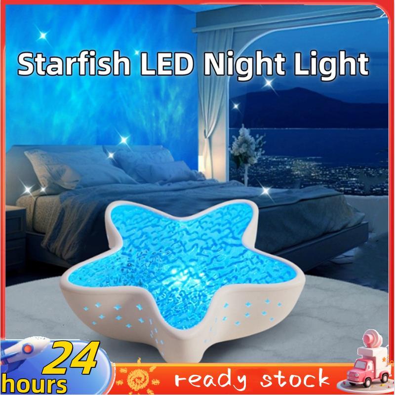[]Wave Pattern LED Night Light Rechargeable Starfish Table Lamp Projector Lighting for Bedroom Desk Decor Festival