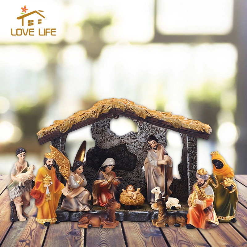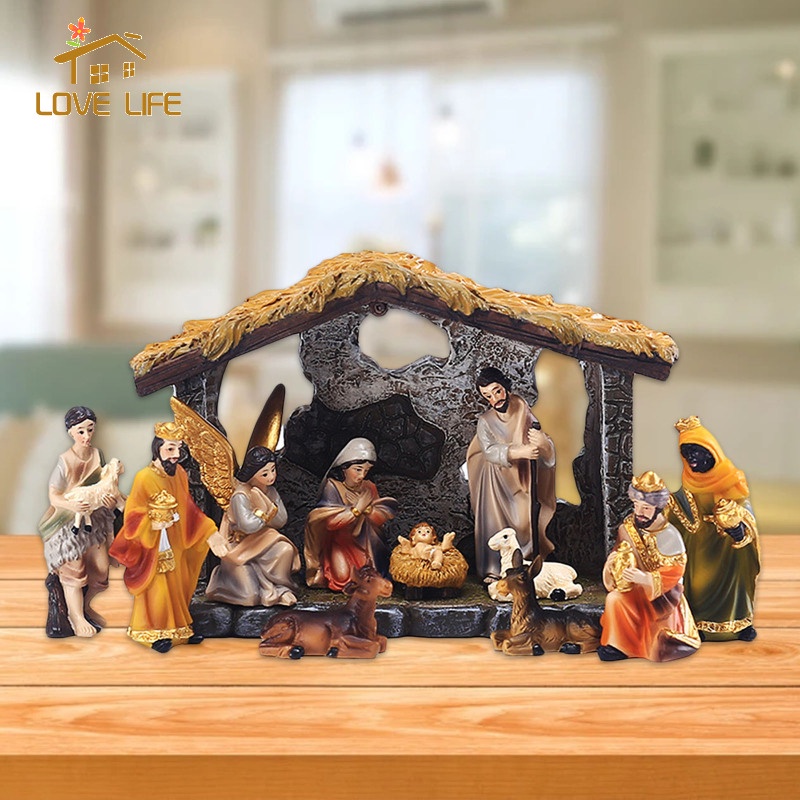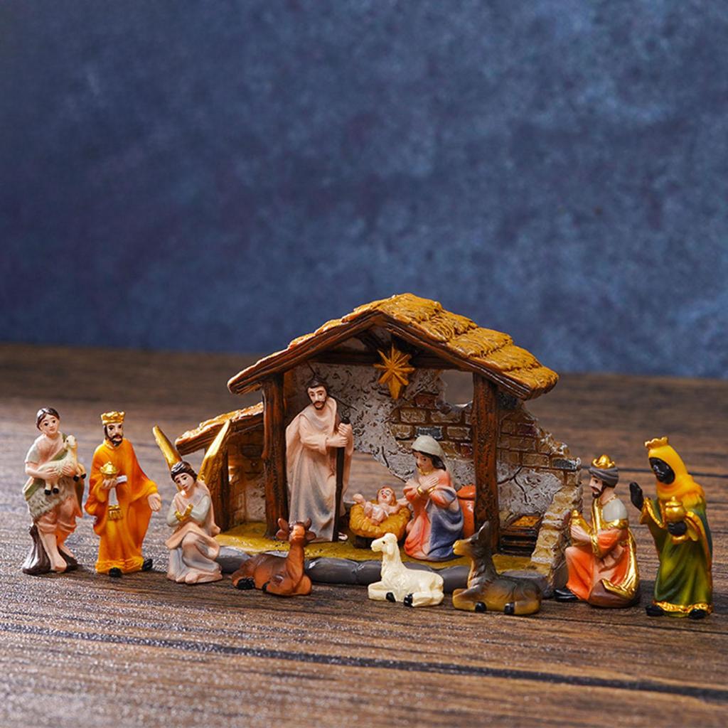 [Whfashion] Nativity Figurine Birth of Statue Set Religious Christian Sculpture Home Ornament