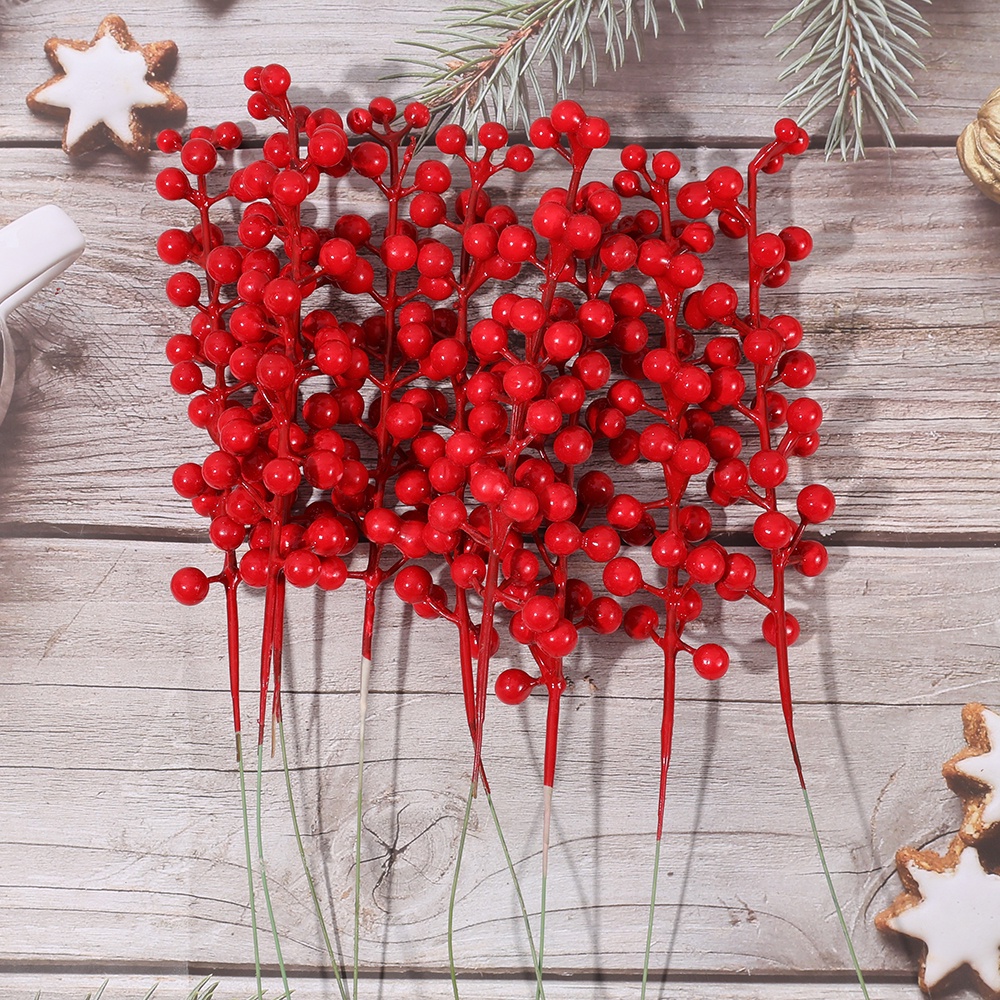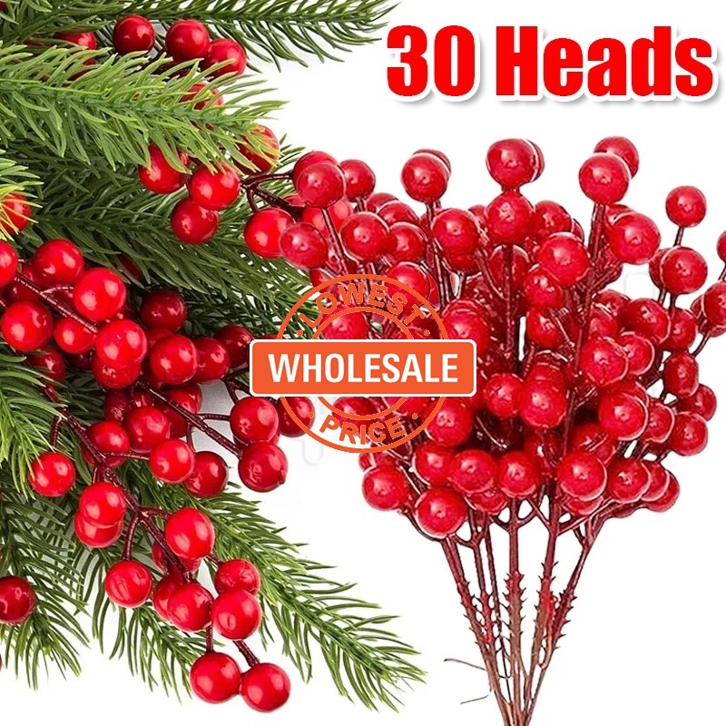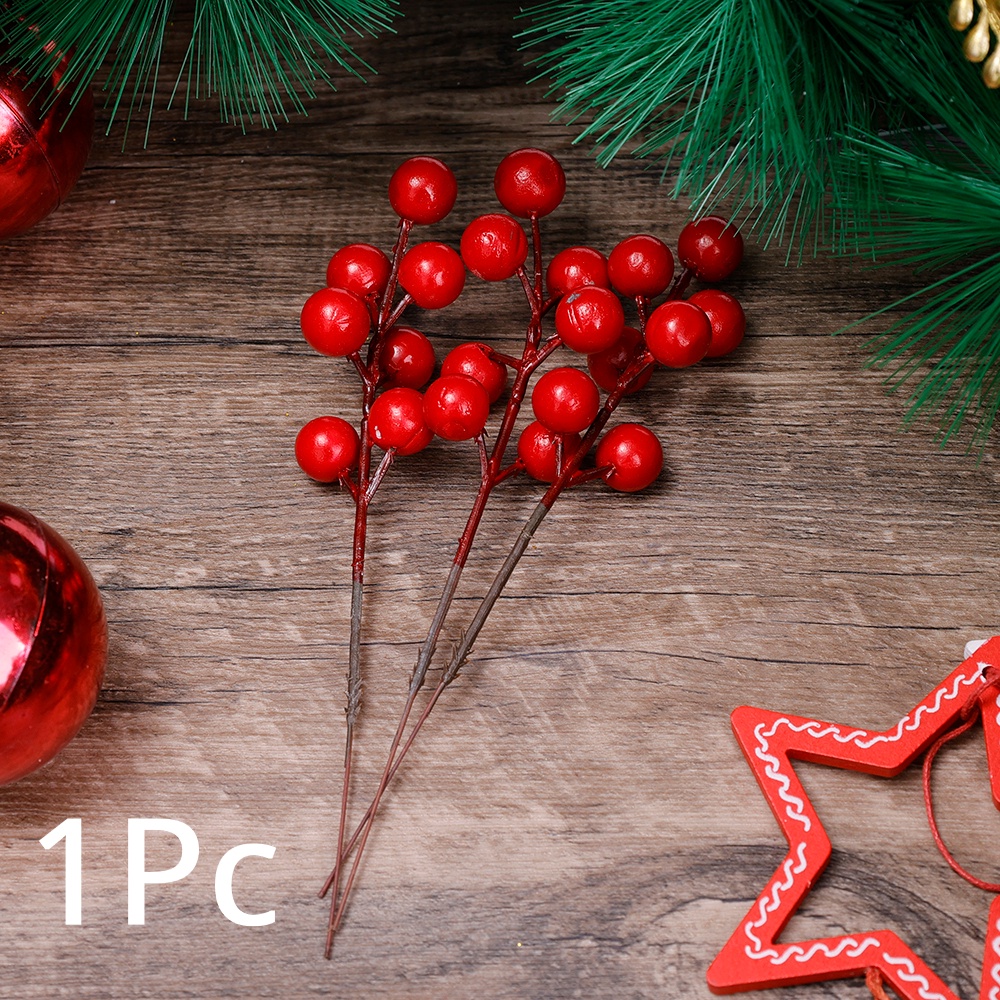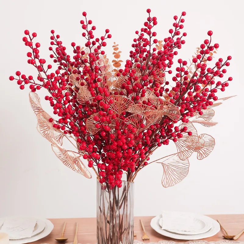 [Wholesale] 30 Heads 1 Branch Christmas Artificial Red Berries Branch / Fake Red Holly Berry DIY Wreath Gifts / Home Xmas Table Ornament / Simulation Red Berries Flowers Bouquet