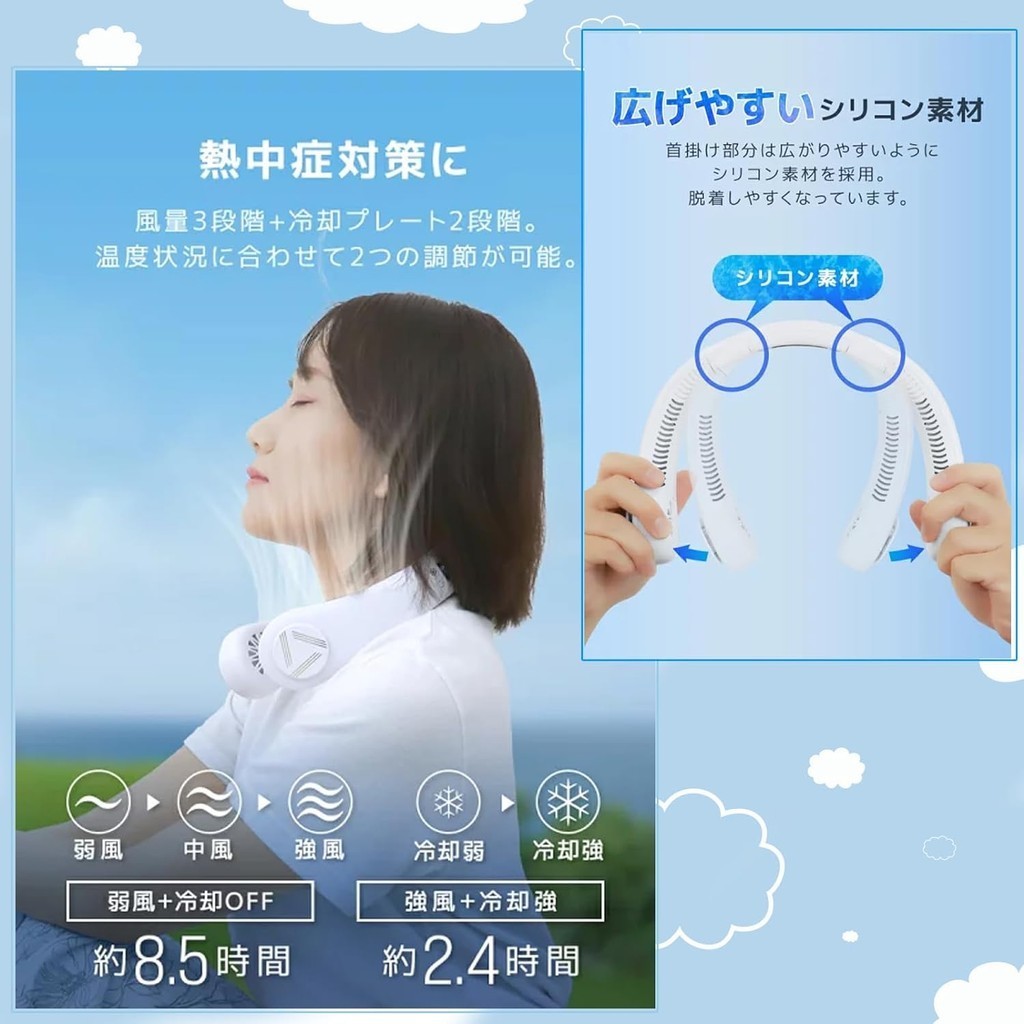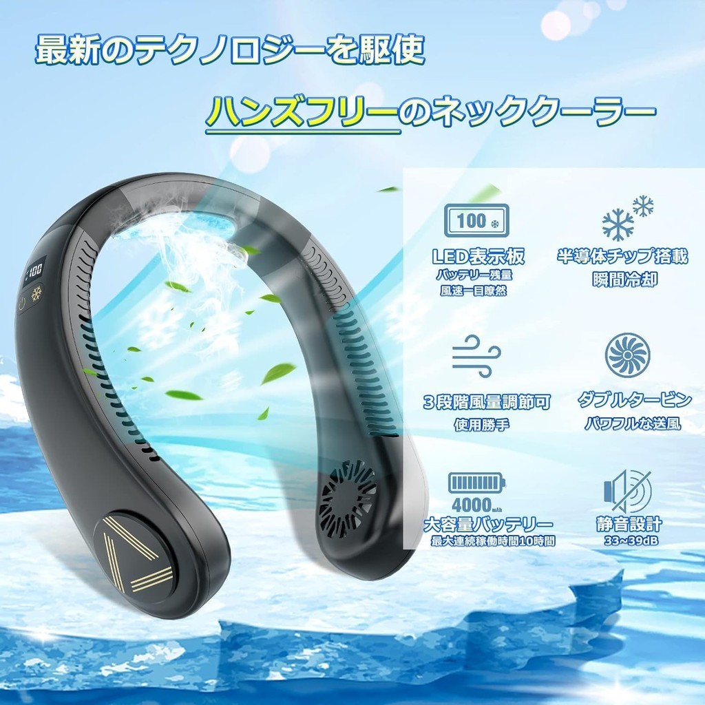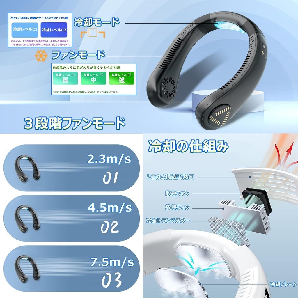 [Winding & cooling neck cooler] CASEETO Neck Store Cooling Cooling neck Cooling Mobile Fan Cooling Handscape Bearing Steet Semiconductor Cooling Plate 3 steps Winding 2 steps Cooler Mode Double hand Liberation Heat Stroke Cou