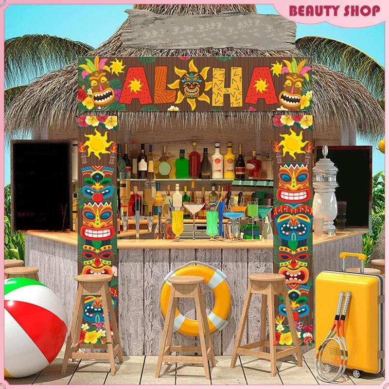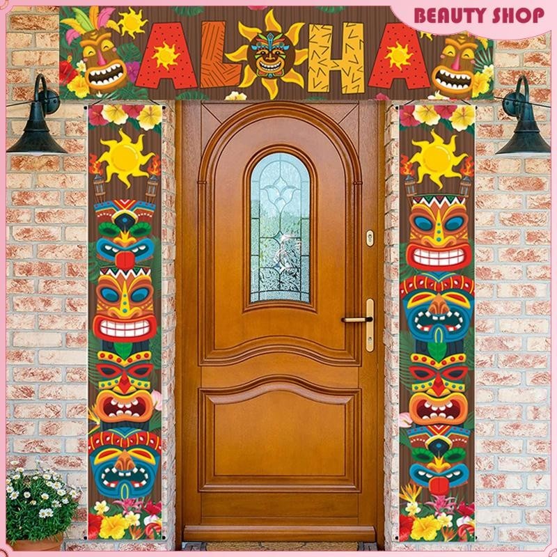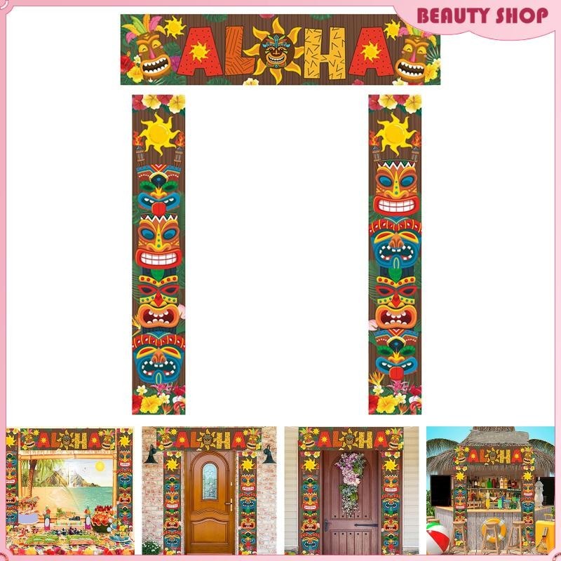 [Wishshopelxj] Door Banner Sign Decorative Party Jungle Background Backdrop for Hawaiian