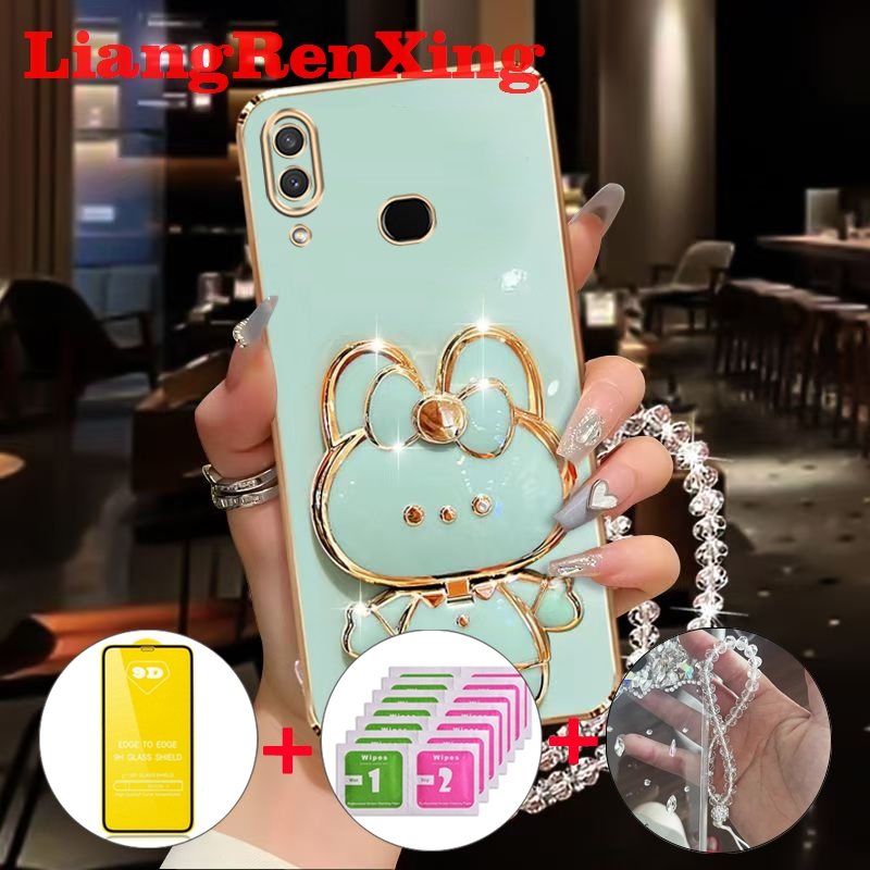[With Tempered Glass]Casing huawei y7 2019 huawei y9 2019 y7 pro 2019 phone case Softcase Electroplated silicone shockproof Cover new design aesthetic with holder Rabbit DDMTSL01
