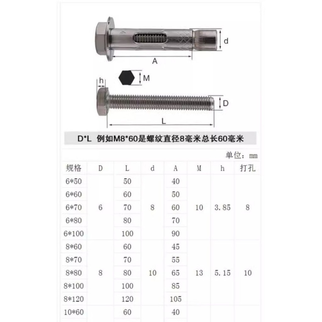 [XCF] 304 Stainless Steel Expansion Screw M6M8M10M12 Outer Hexagon Inner Expansion Bolt Hanging Pull Explosion Screw Explosion Bolt